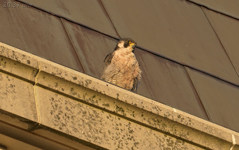 -Geen beelden, maar de jonge Boomvalk in Voorschoten liet zich na uren lang lang wachten heel kort zien en bedelend horen.