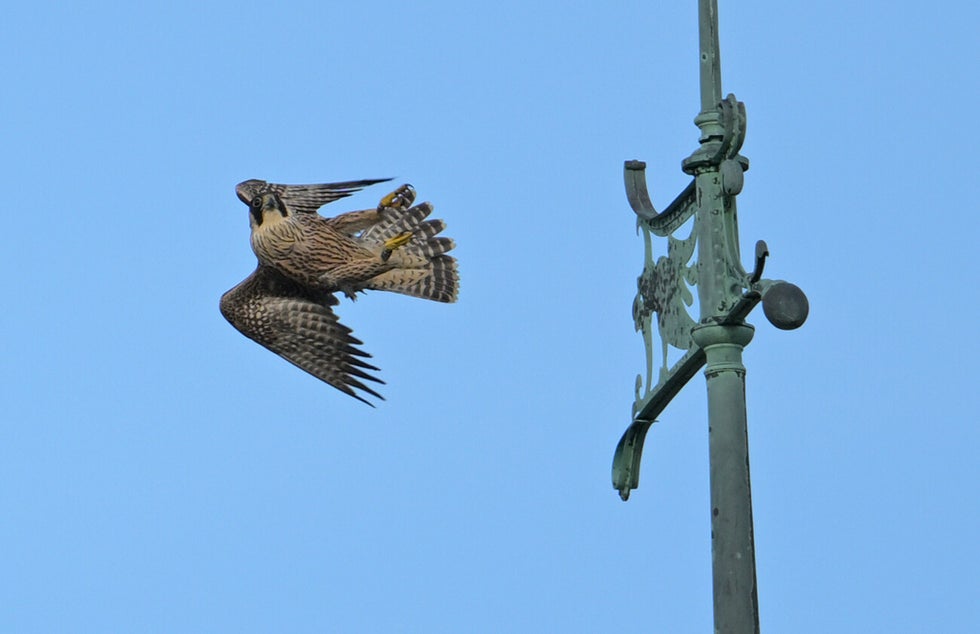 In Voorschoten ga ik altijd even langs de Laurentius voor eventuele Slechtvalken.