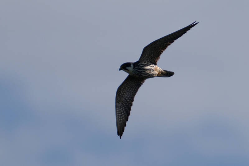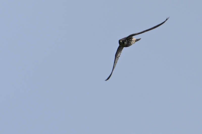 Een glimp van een Boomvalk......Ooit kon je in Augustus meerdere exemplaren langdurig volgen boven een goede insekten-locatie.