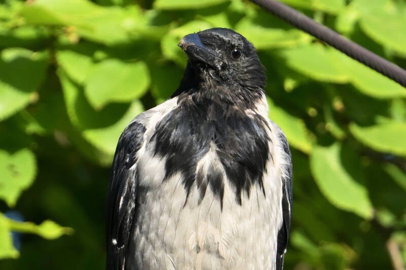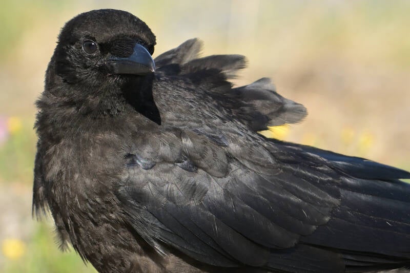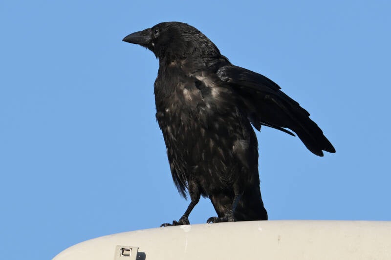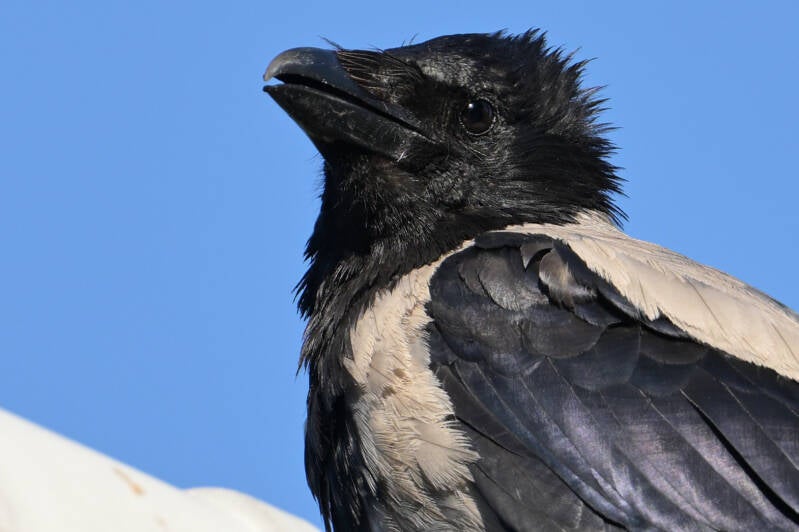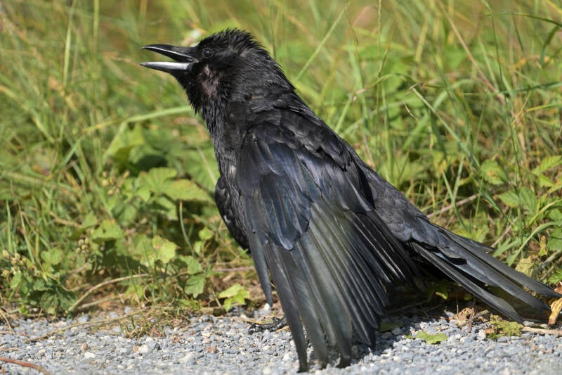 Zijn Zwarte wijf gaat even krassen en toont daarbij nog rode snavel binnendelen die zouden kunnen wijzen op een nog jeugdige leeftijd :