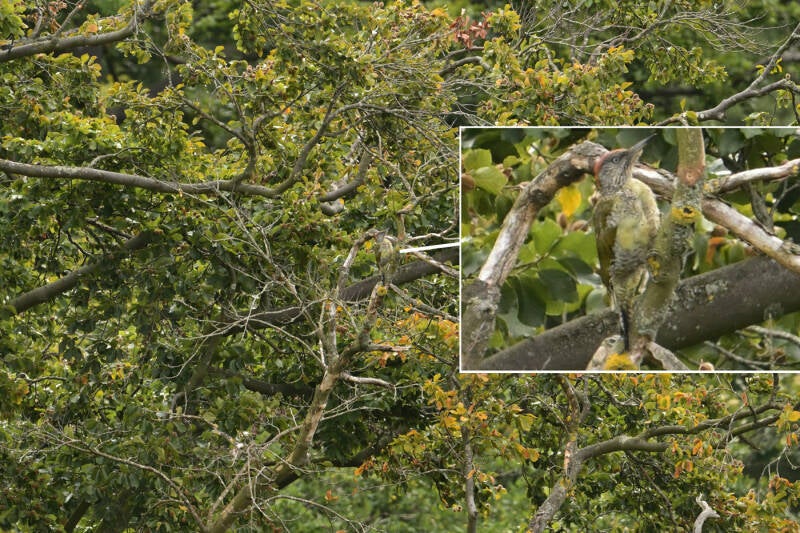 Ik besluit hem daar op te sporen en tref hem in een dode zogenaamde 'geringde' stervende Populier :