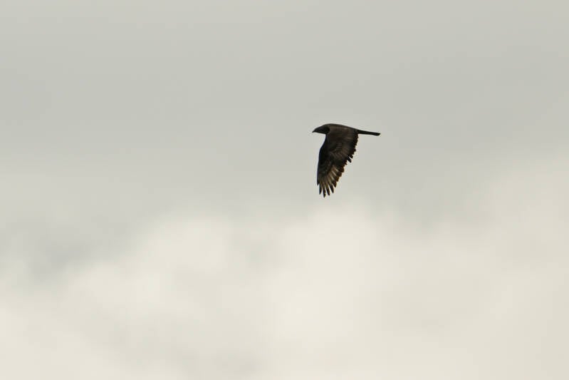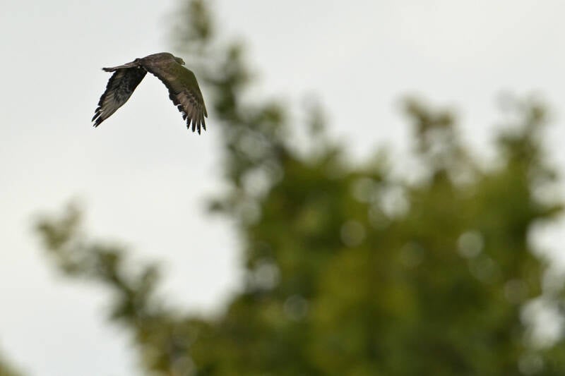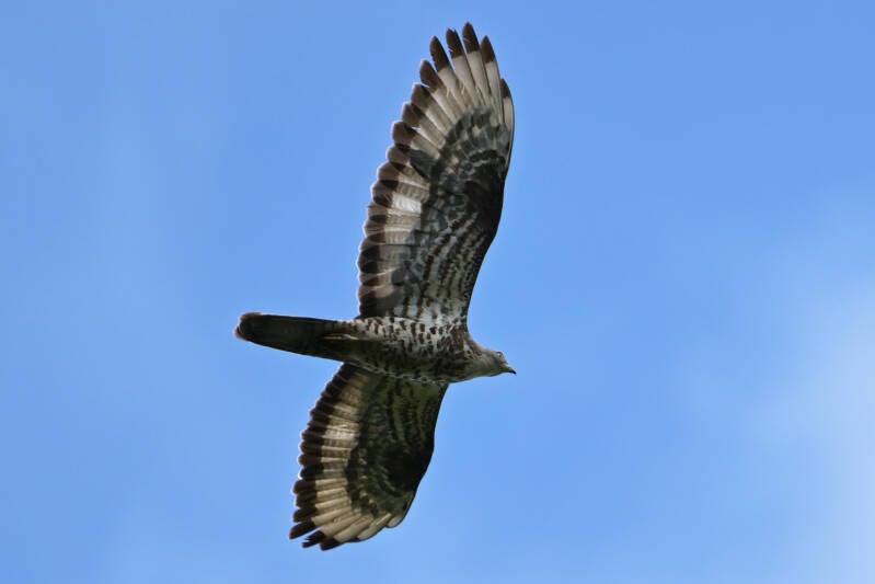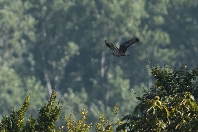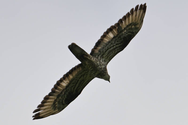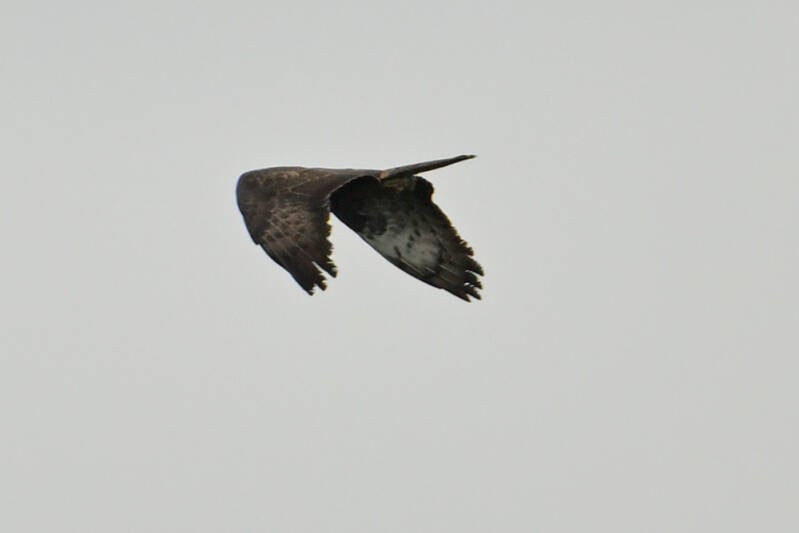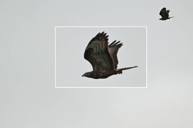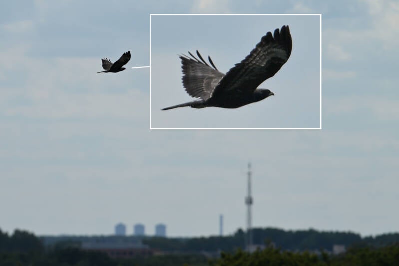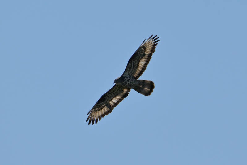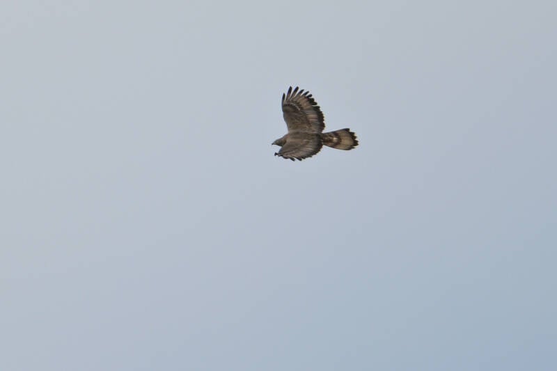 Het is toch nog een verrassing als er een Wespendief verschijnt. Ondanks de grote afstand is direct duidelijk dat het een volwassen man betreft :