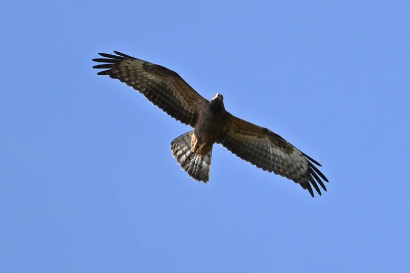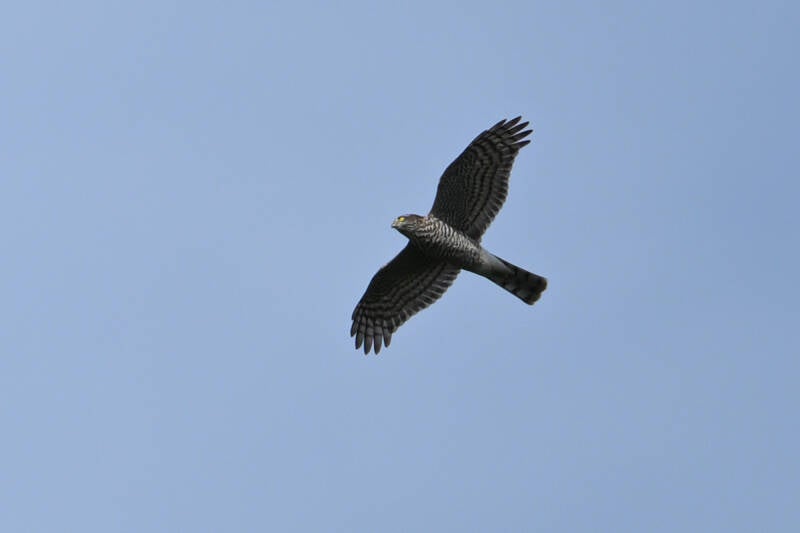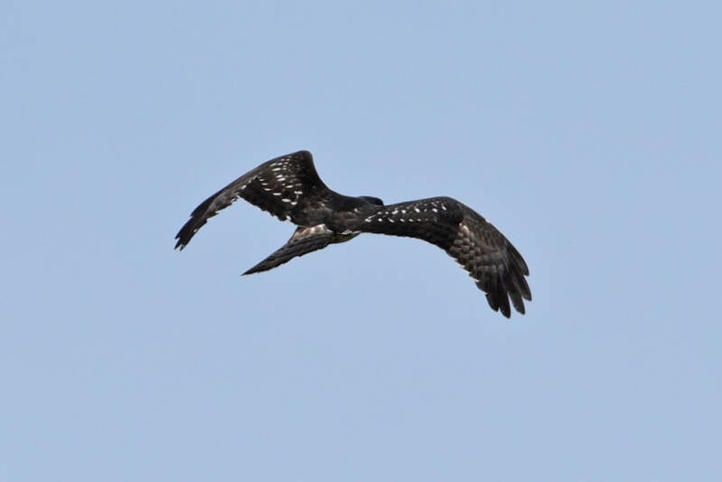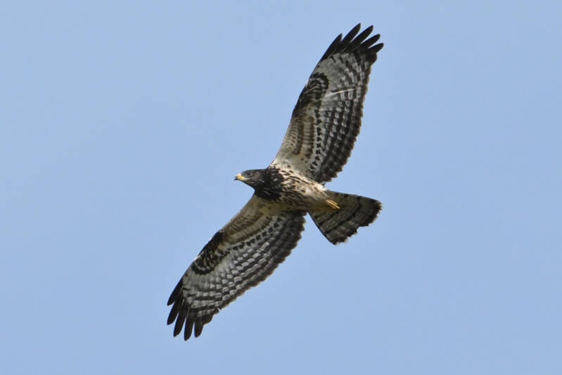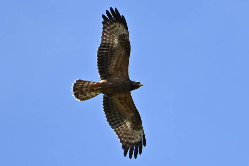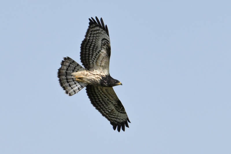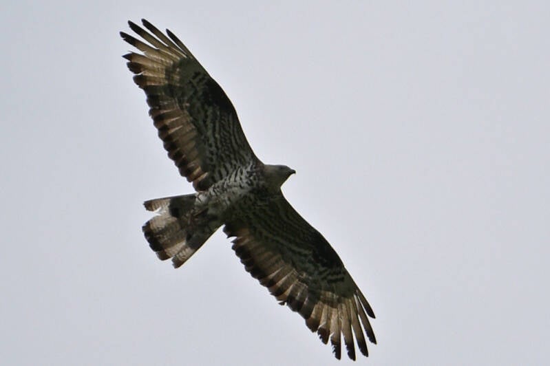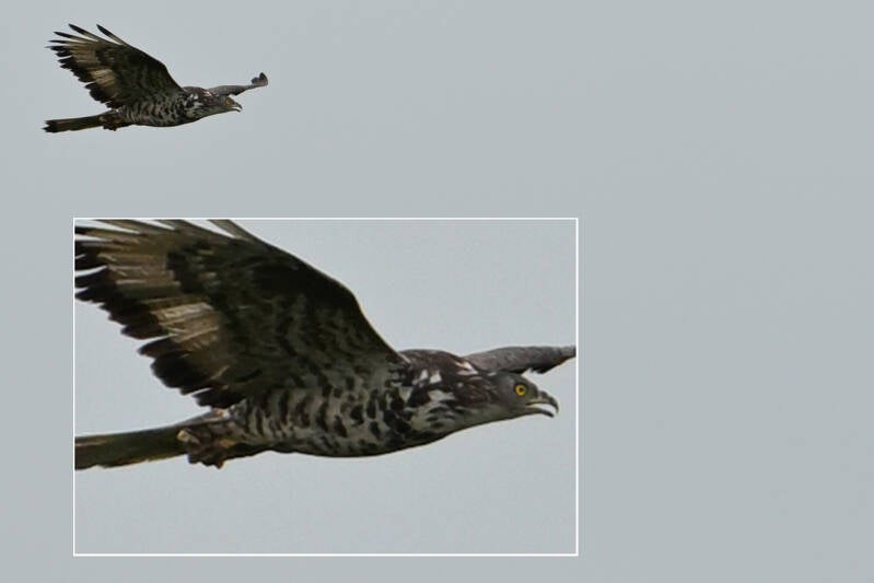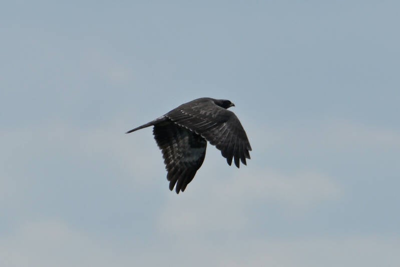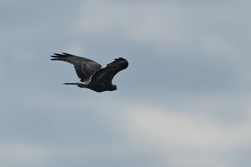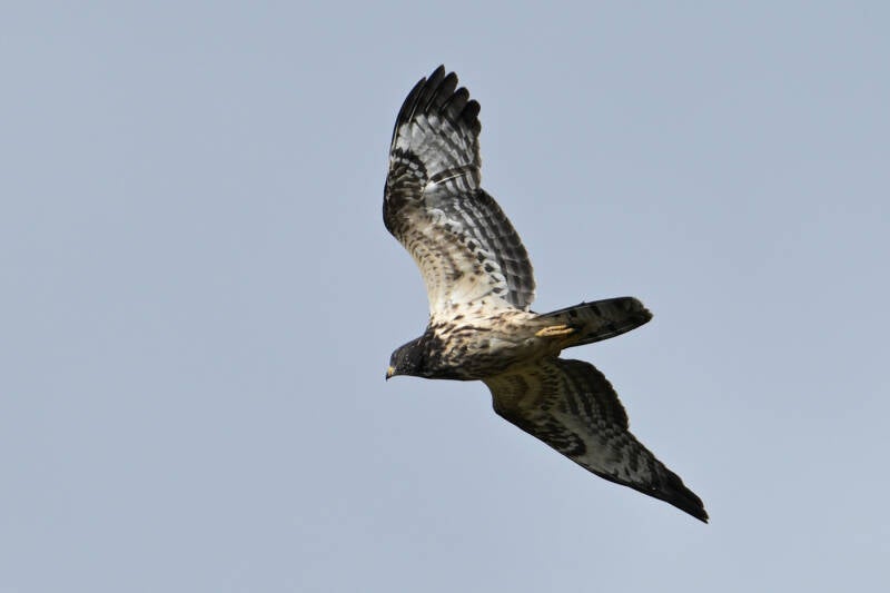 Het is toch nog een verrassing als er een Wespendief verschijnt. Ondanks de grote afstand is direct duidelijk dat het een volwassen man betreft :