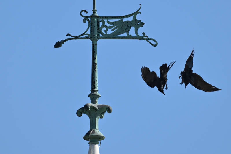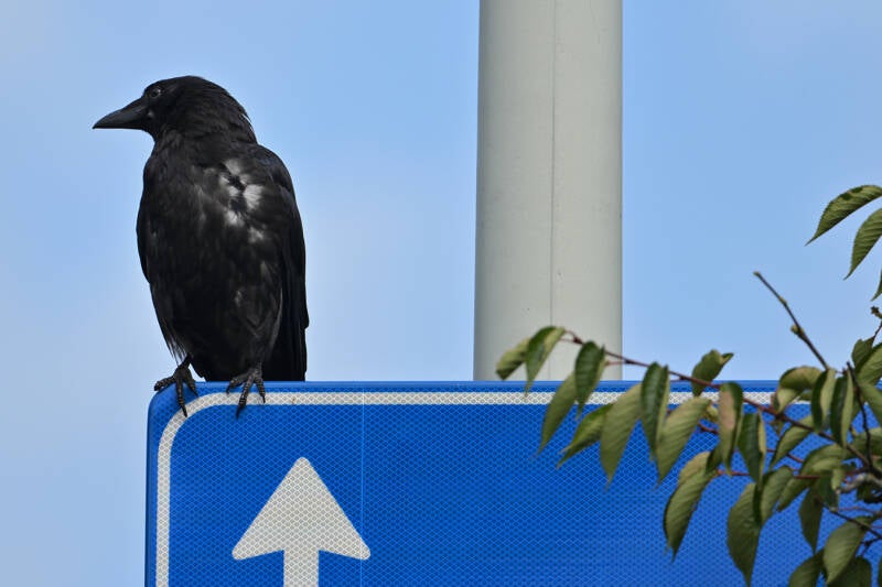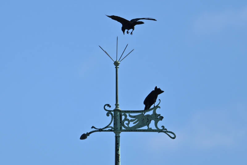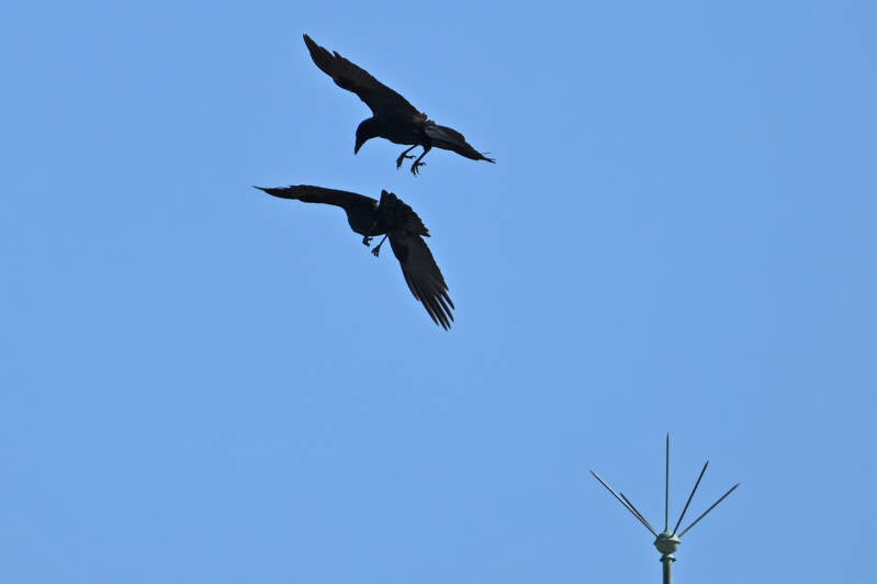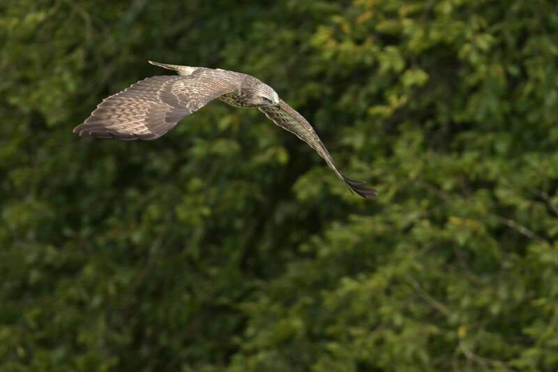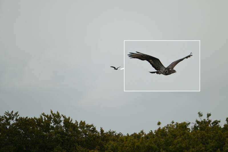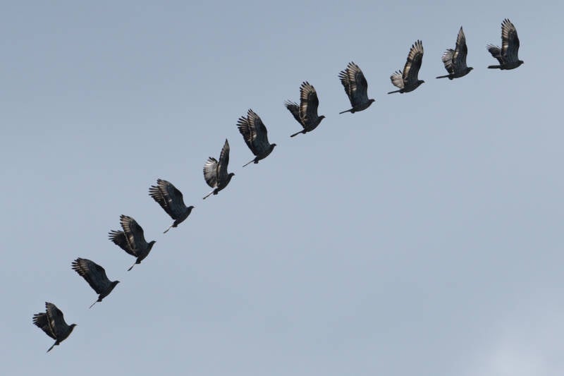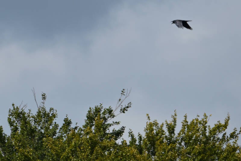 Hij draait een paar rondjes voordat hij richting nestbos koerst :