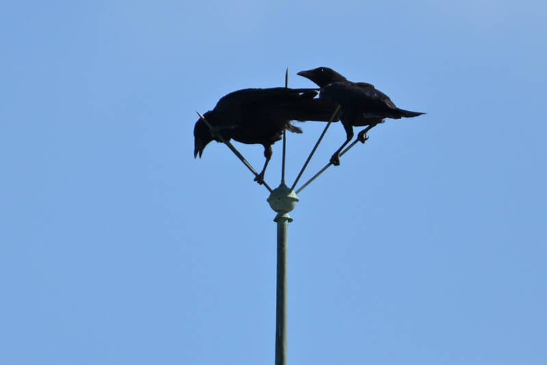 Het wemelt werkelijk van de Houtduiven.....Ze fladderen regelmatig op halve snelheid langs de Toren maar de Valken negeren de soort :