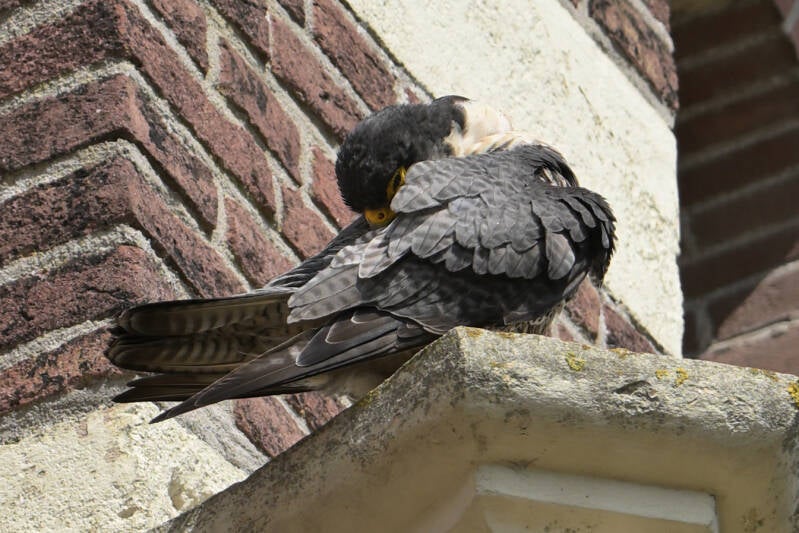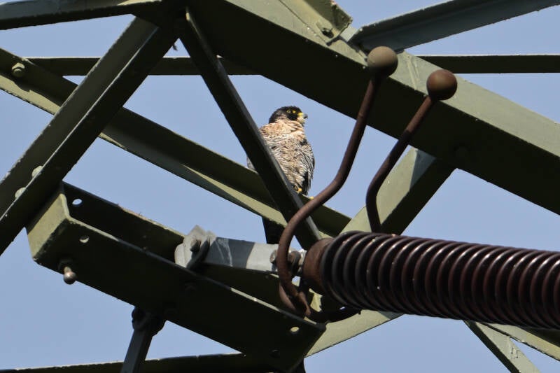 Als bonus een tref met meneer Slechtvalk op een dwarsligger van mast 8.....(Het is dan 21.00 uur):