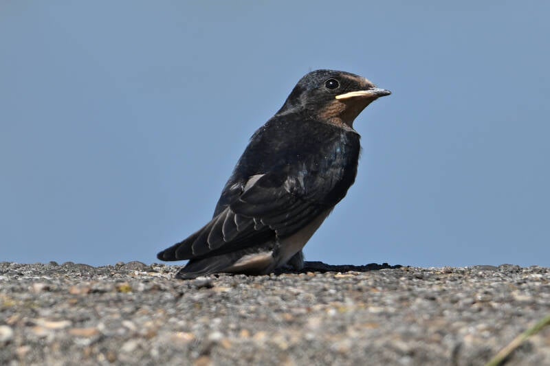 Het betreft een adult van een mislukt broedsel die echter met open snavel nog wel enkele sporen van jeugd toont en dus niet al te oud kan zijn :