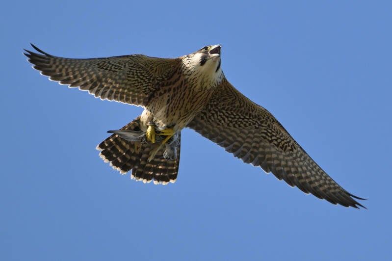 Direct hierna krijg ik deze jonge Valk op grote afstand in beeld met iets kleins in de klauwen :