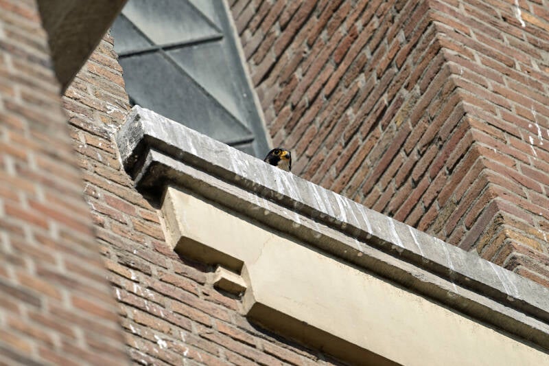 Iets later gaat hij nog mooi in een raamkozijn zitten....Ik kon helaas niet verder naar achter in verband met het Dunea Hekwerk :