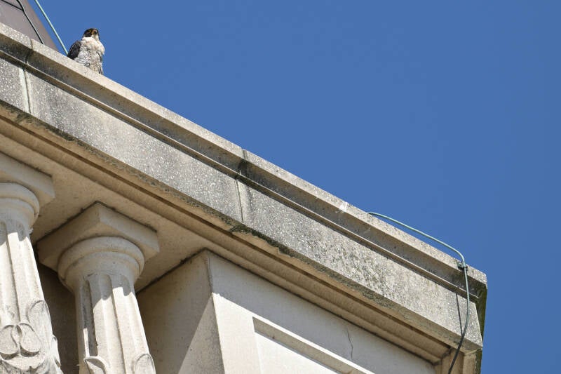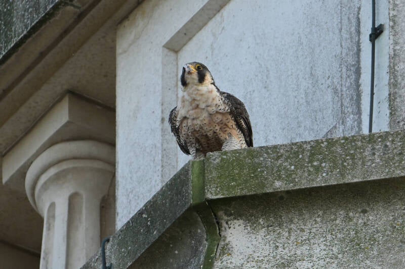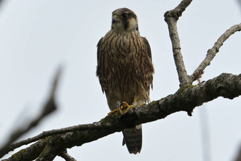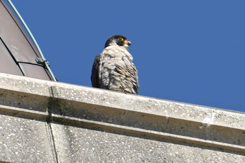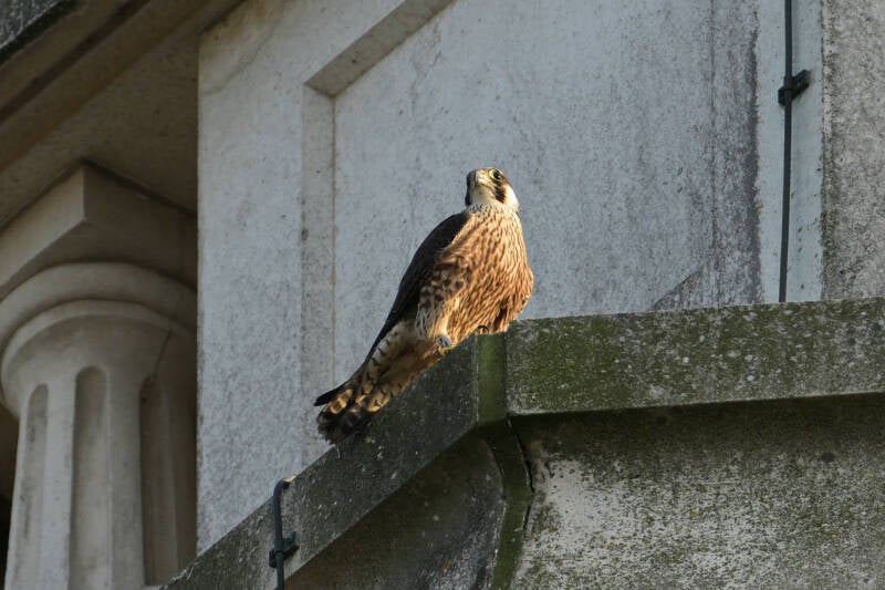Op de terugweg in de avond een jonge Slechtvalk op het terrein van de Engelse school op mast 22 :