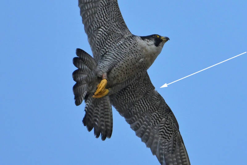 Omdat hij recht op me afvliegt is het een ideale gelegenheid om zijn vleugelwond weer eens te checken..: