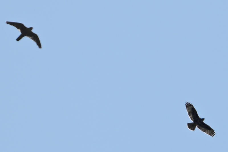 Voorheen zag je tijdens een paar uur turen naar de Slechtvalken regelmatig één of enkele (vaste) Buizerds in de buurt of op afstand overvliegen.