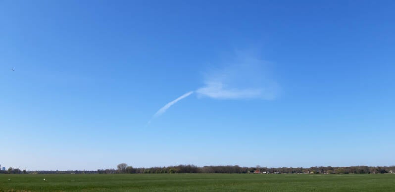 Rond 14.00 uur stijgt op bijna 2 km afstand Pa Raaf naar grote hoogte :