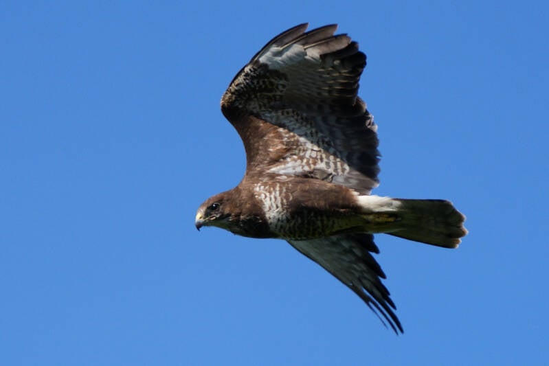 Vooral het ooglijntje en het schijnbaar fijne snaveltje is enigszins verdacht maar het is toch een Buizerd.