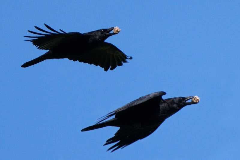 Stijgt weer op en pas thuis op de computer zie ik dat beide Raven in beeld zijn :