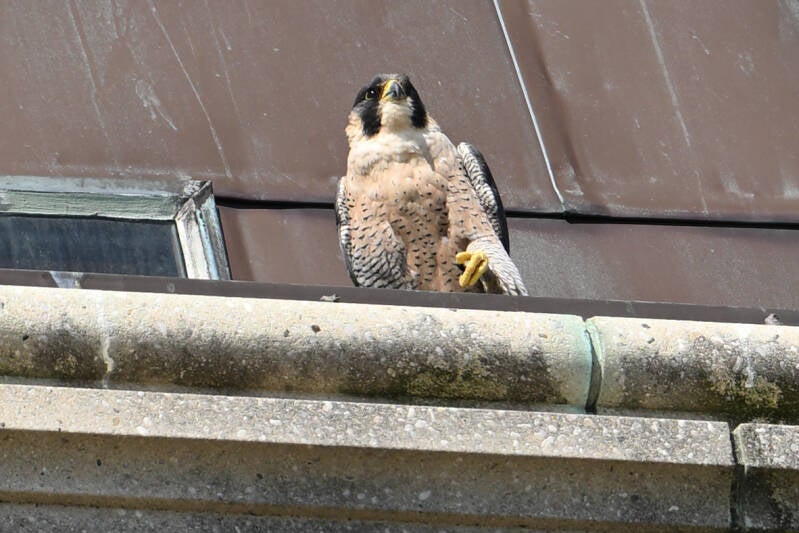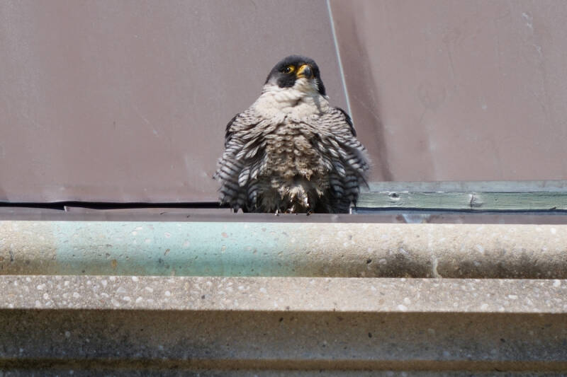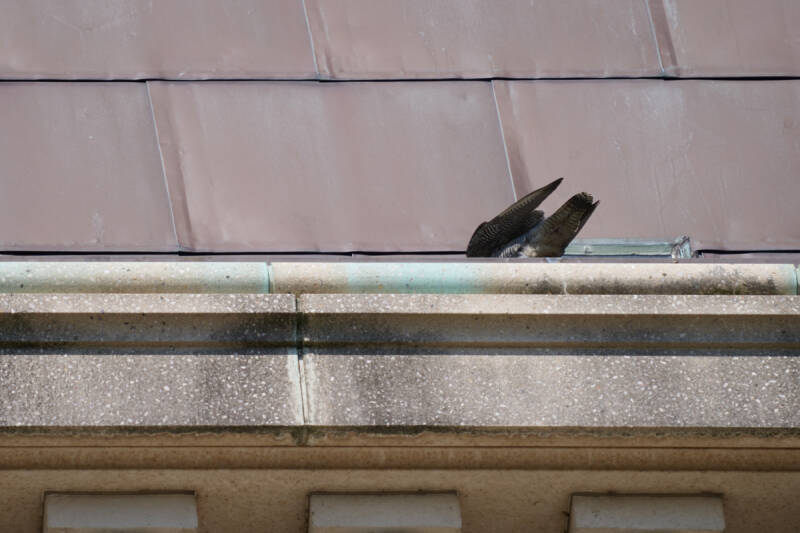 Hij nam nog een beperkt bad (bodydip) in de dakgoot :