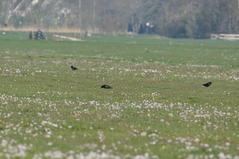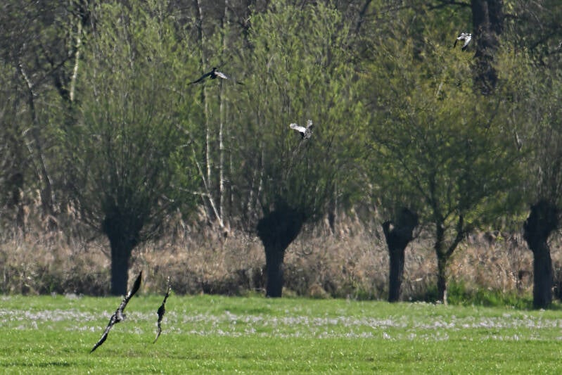14 April : In de Polder is Pa Raaf op grote afstand druk met 2 Kraaien....(6 foto's-montage)