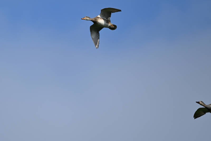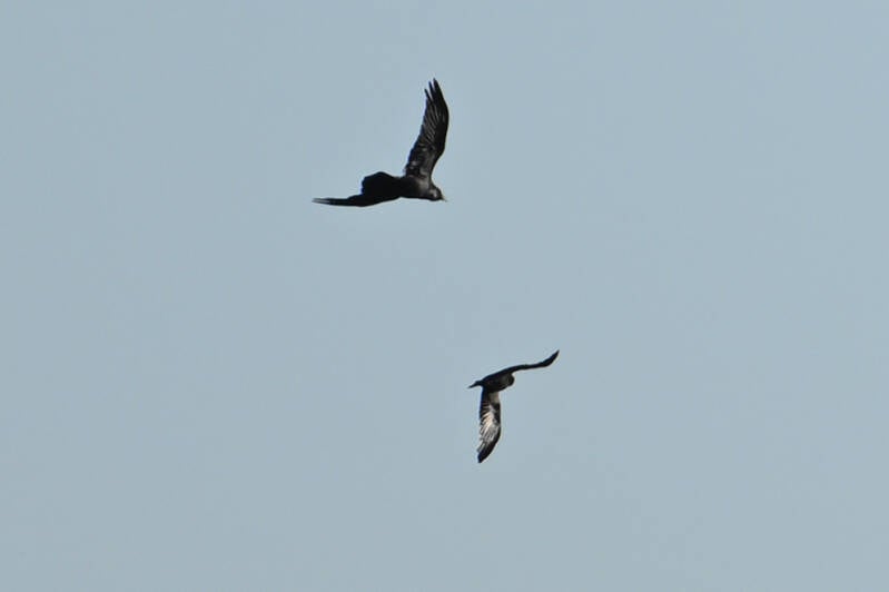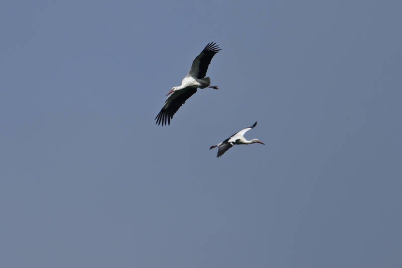 Einde waarneming als beide Vogels uiteindelijk uit beeld verdwijnen achter de bosrand :