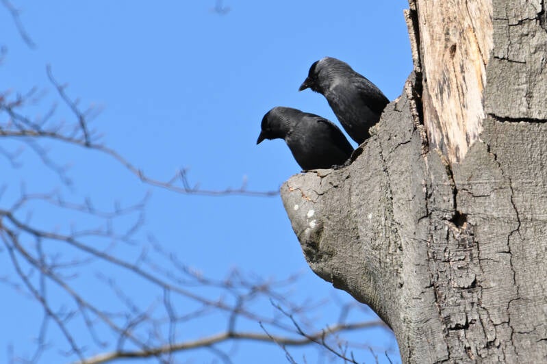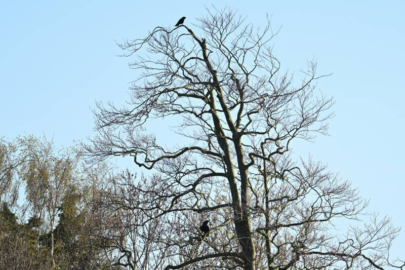 Tja, vlakbij heeft deze Kraai een dode boom uitgezocht om te nestelen ...Niet echt verstandig :