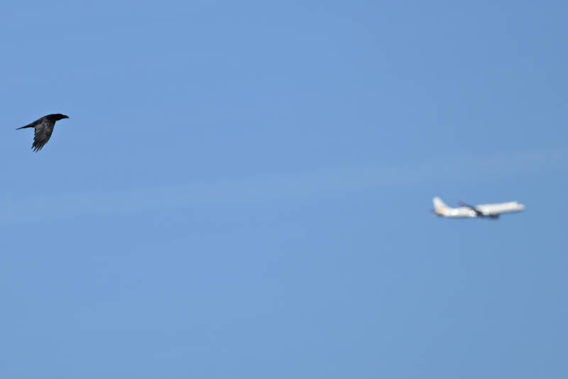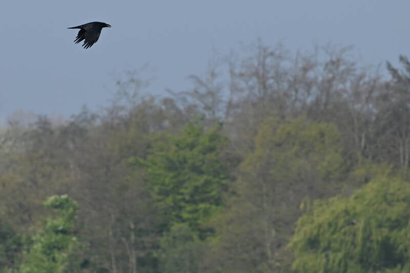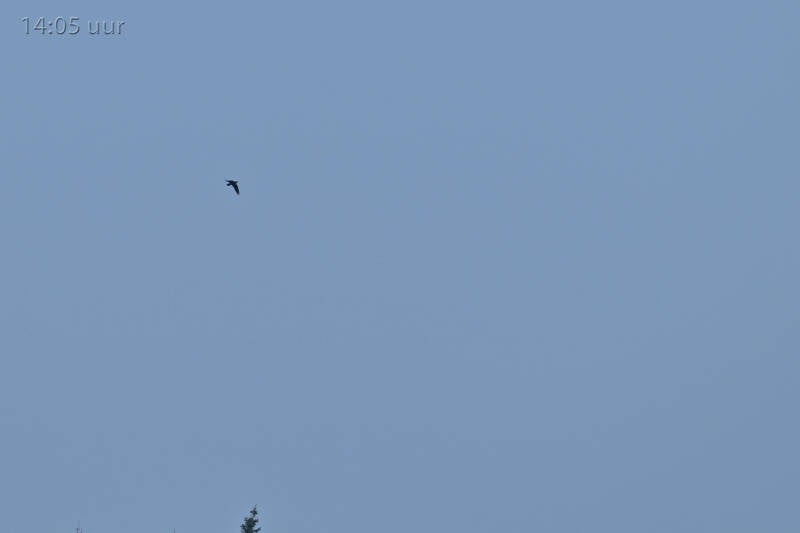 Rond 19.00 uur een avond-passage van de Raven, de enige vliegbeweging in totaal 8 uur waken-speuren (27-28 april)