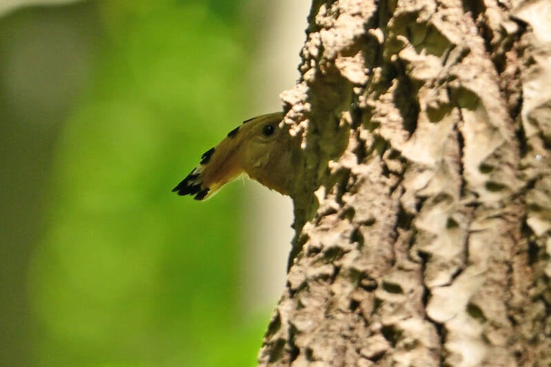 Na een paar uur laat de Hop zich zien.....Hij zit helaas in een schaduwrijk Dennenbos :