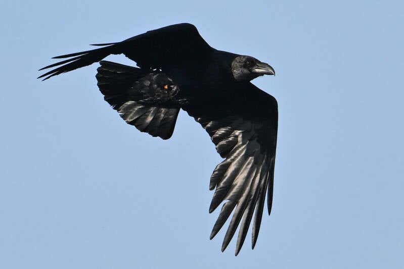 Het mottige uiterlijk van de Kraai komt hier beter tot zijn recht. Hij heeft mogelijk een schot hagel overleefd.
