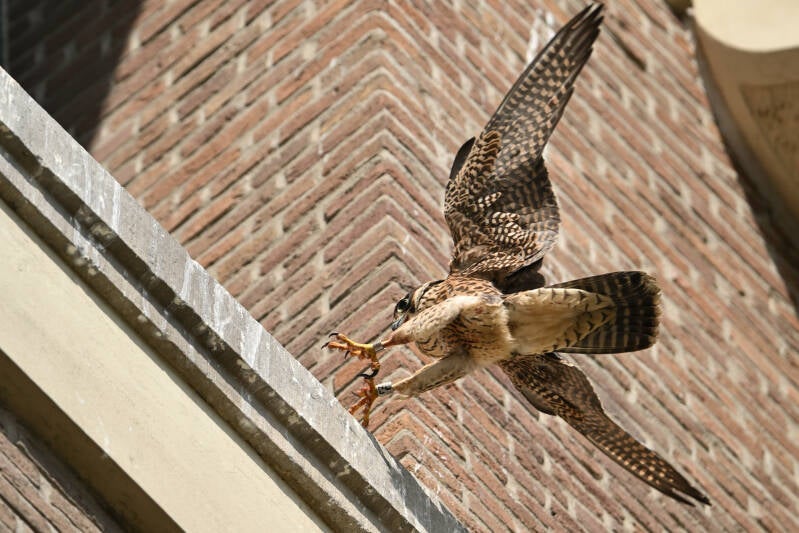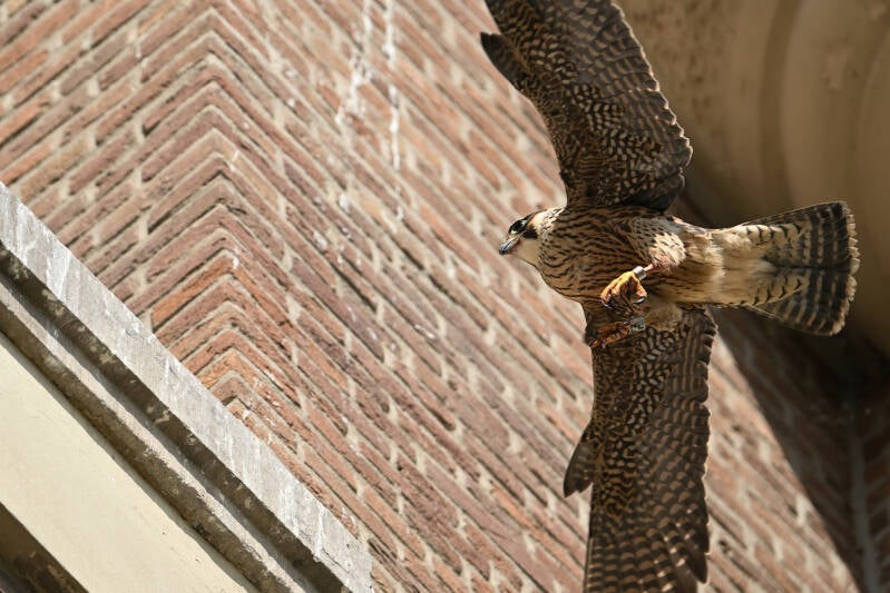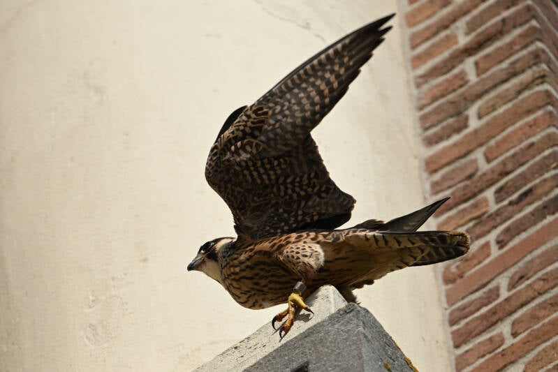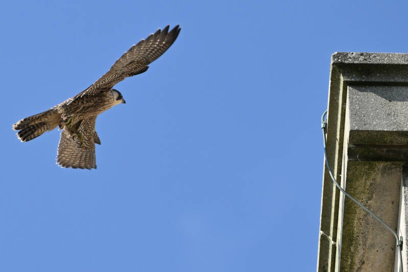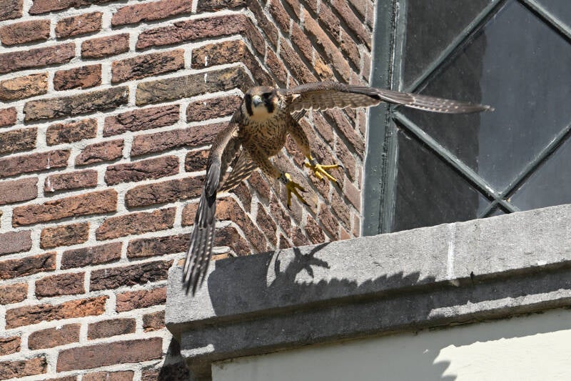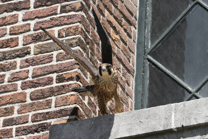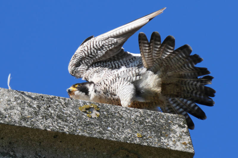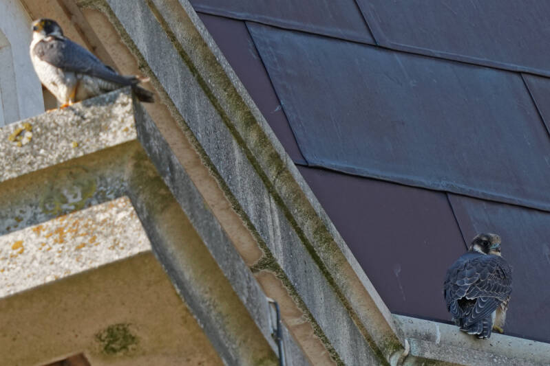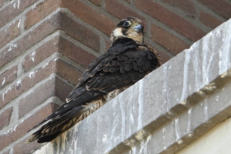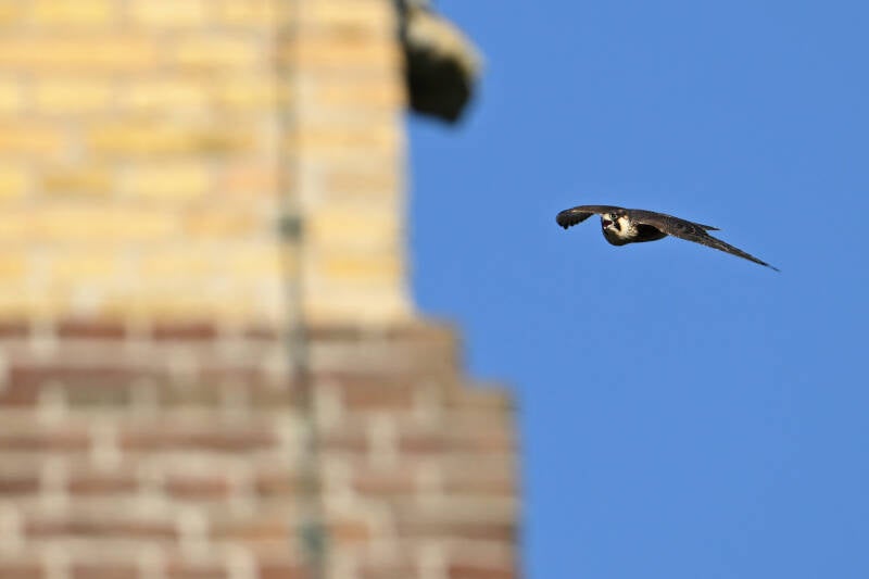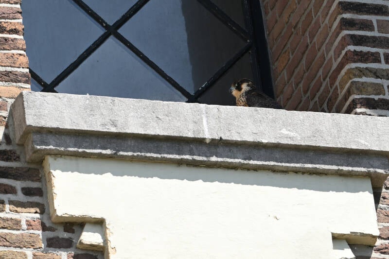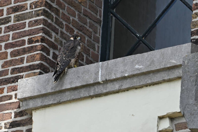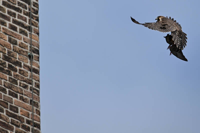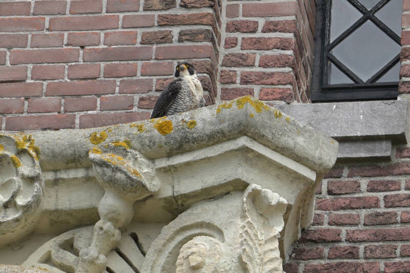 kan je daar nog steeds prooidragende (jonge) Slechtvalken zien. Eén jong scheurt apentrots rond de Toren na een flinke kluif te hebben