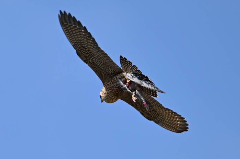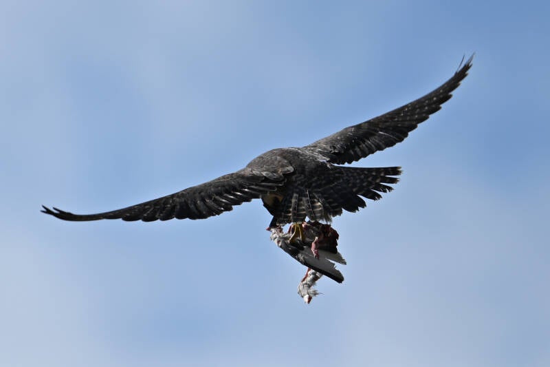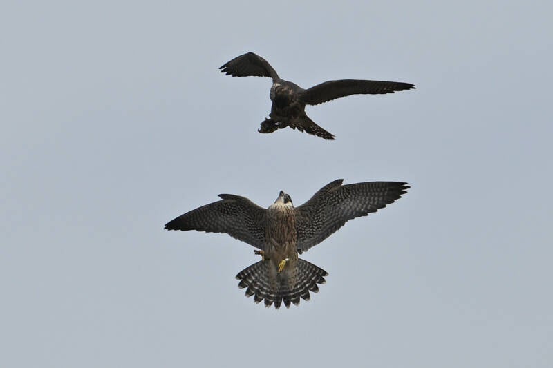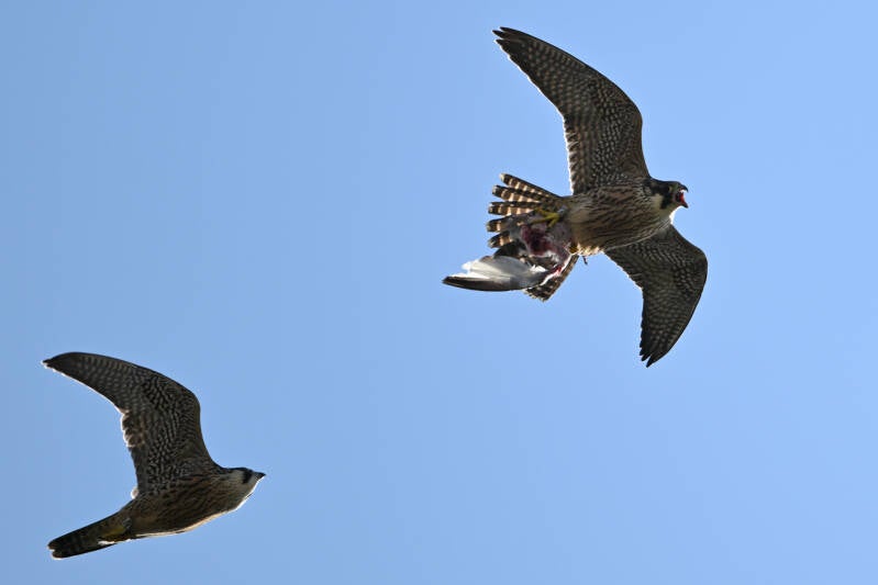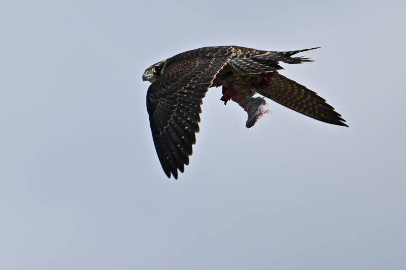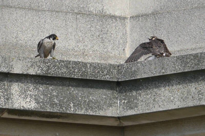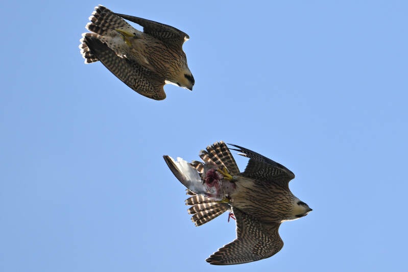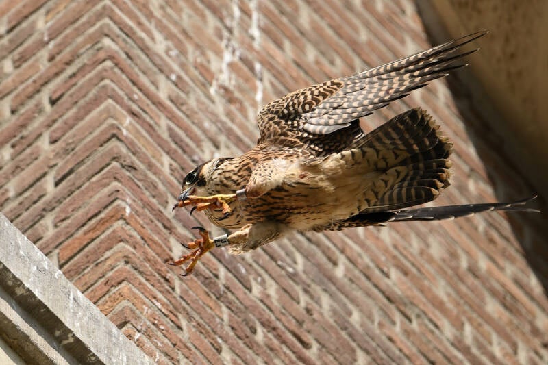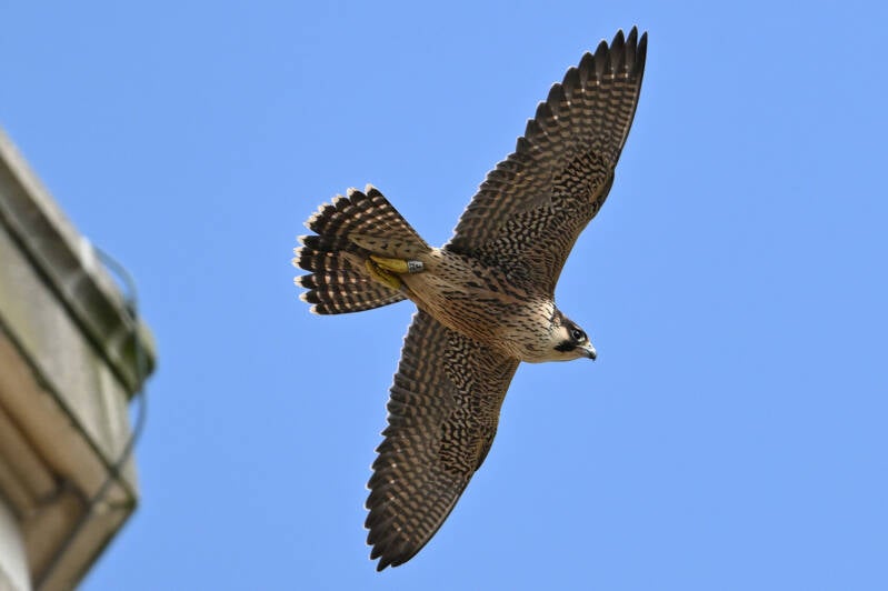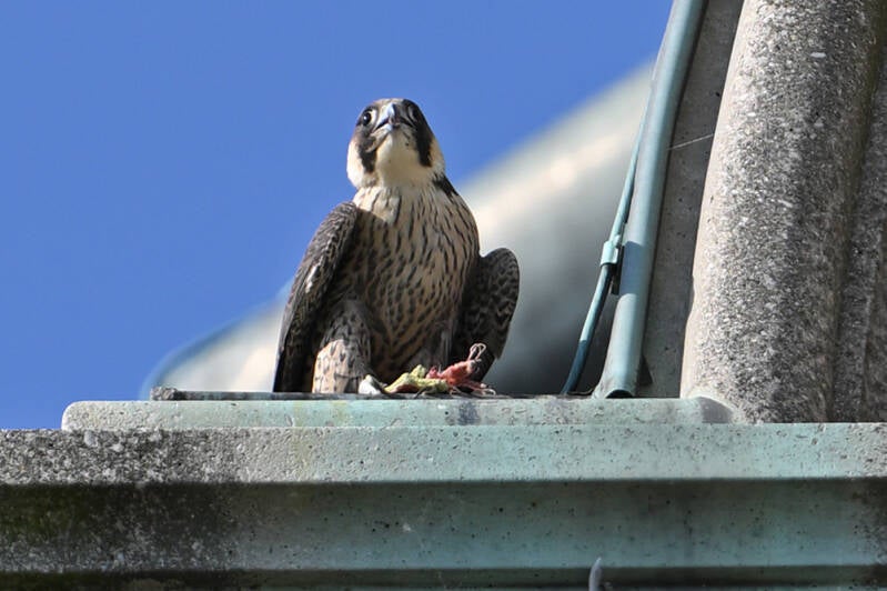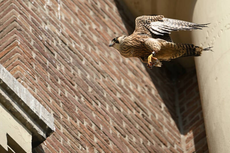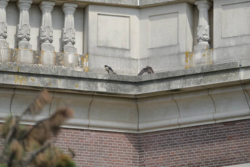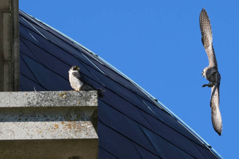 kan je daar nog steeds prooidragende (jonge) Slechtvalken zien. Eén jong scheurt apentrots rond de Toren na een flinke kluif te hebben