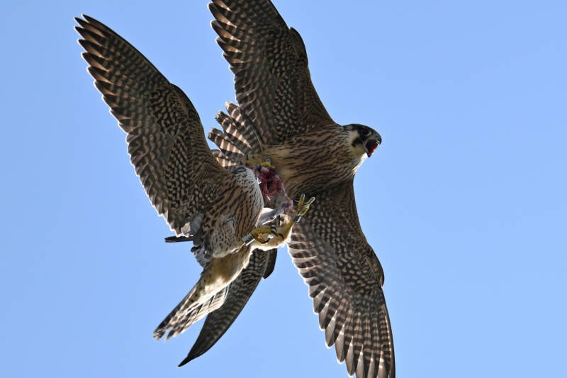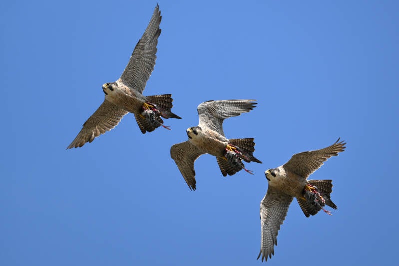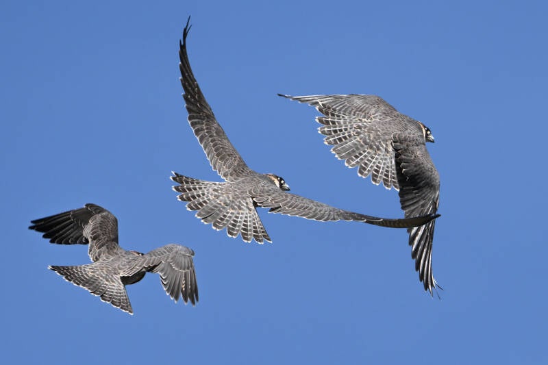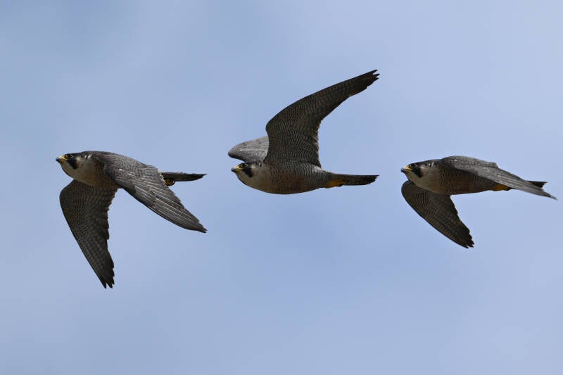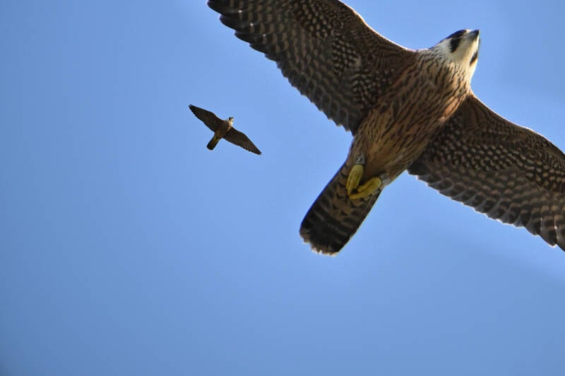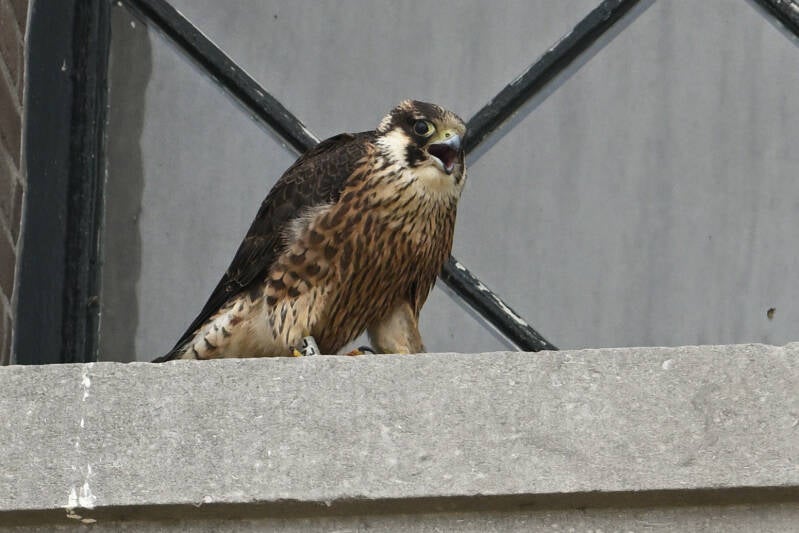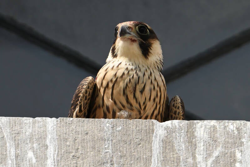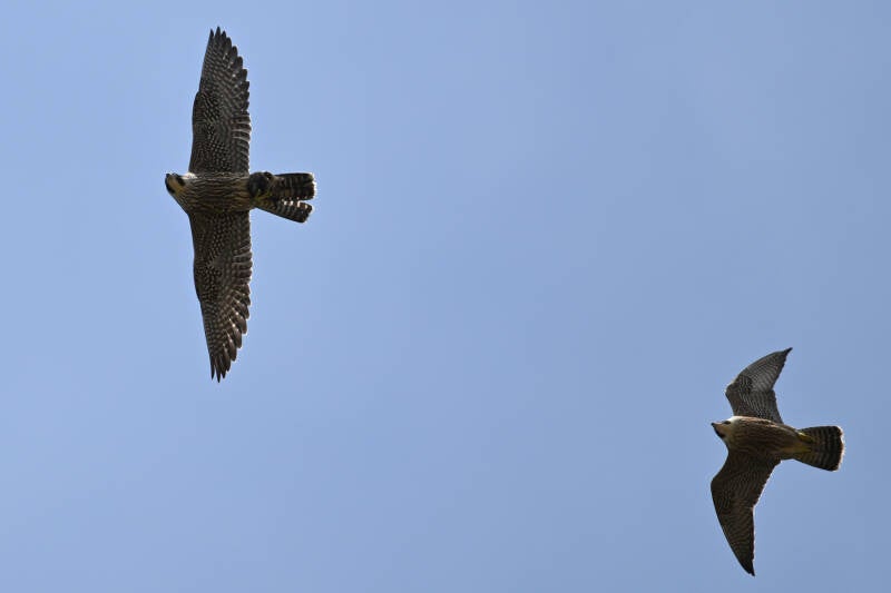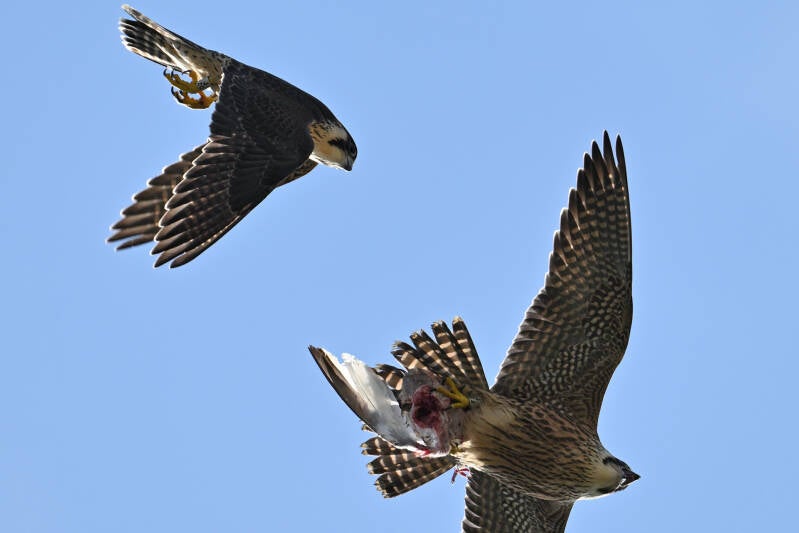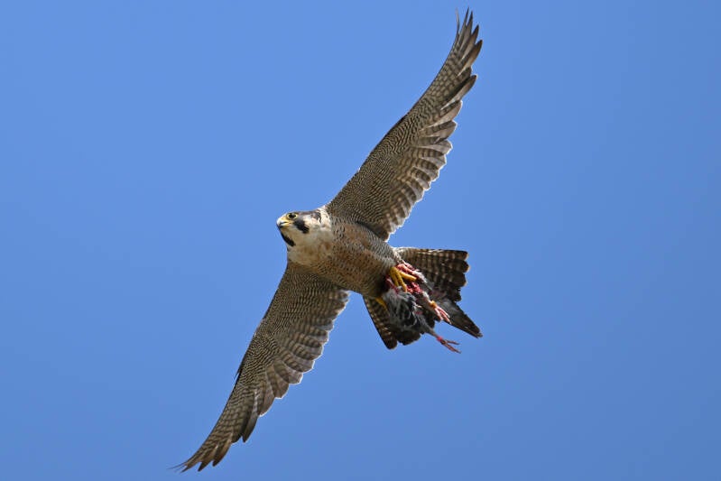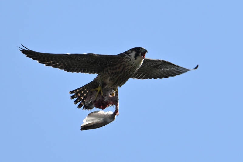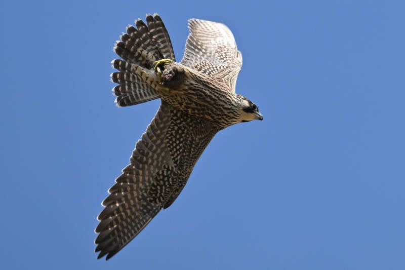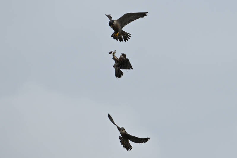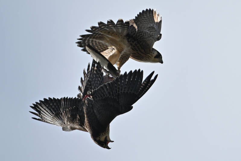kan je daar nog steeds prooidragende (jonge) Slechtvalken zien. Eén jong scheurt apentrots rond de Toren na een flinke kluif te hebben
