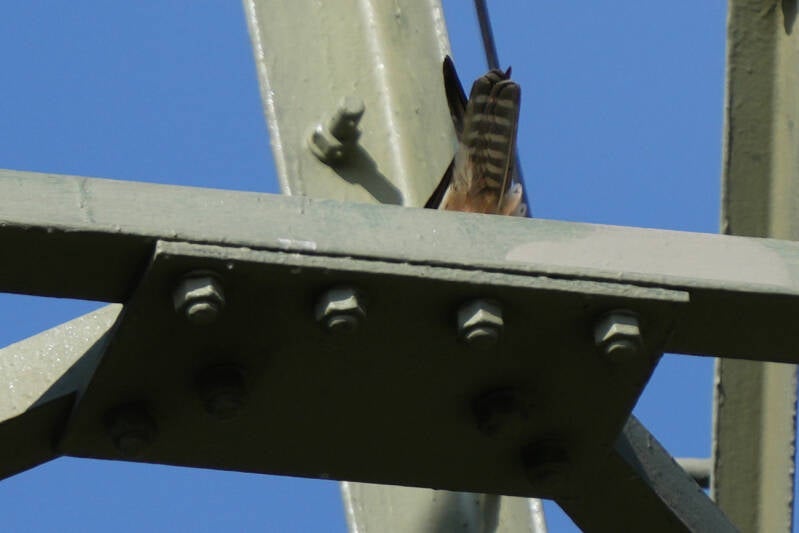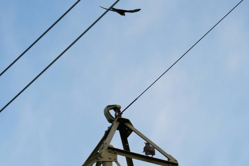 Het mannetje zit een paar honderd meter verder op mast 8...(Het is inmiddels 19.30 uur)