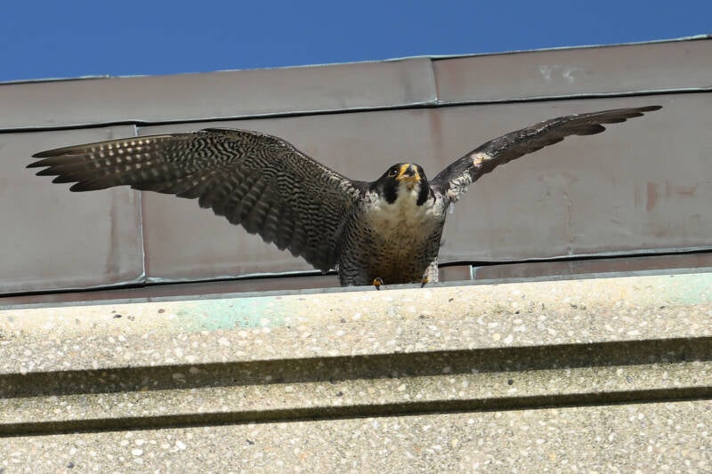 Een bekende Slechtvalk uit de buurt is neergestreken :