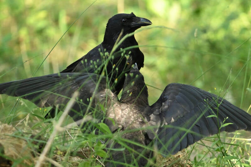 De jonge Kraaien zijn daar nu op de leeftijd dat ze uit de dekking komen :