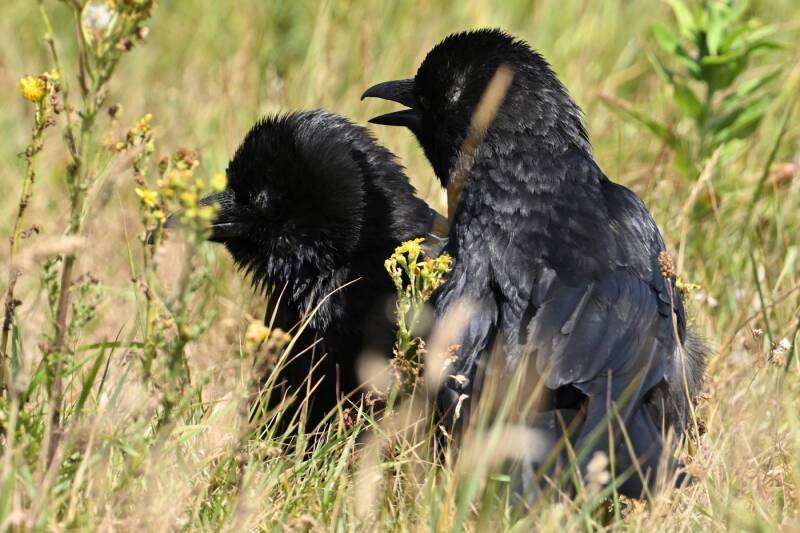 De jonge Kraaien zijn herkenbaar aan het slanke lijfje en strakke verenpak, waardoor ze hoog op de poten lijken te staan :