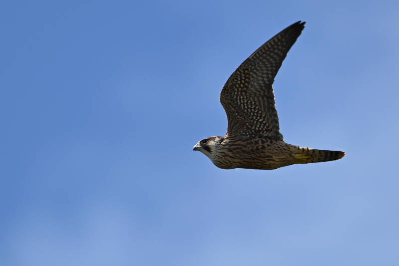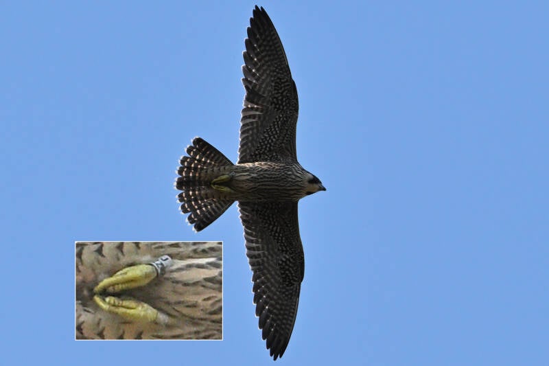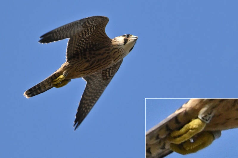 Dit is de eerste jonge Slechtvalk die ik vandaag fotografeer. Thuisgekomen zie ik iets merkwaardigs bij het bekijken van de foto's: