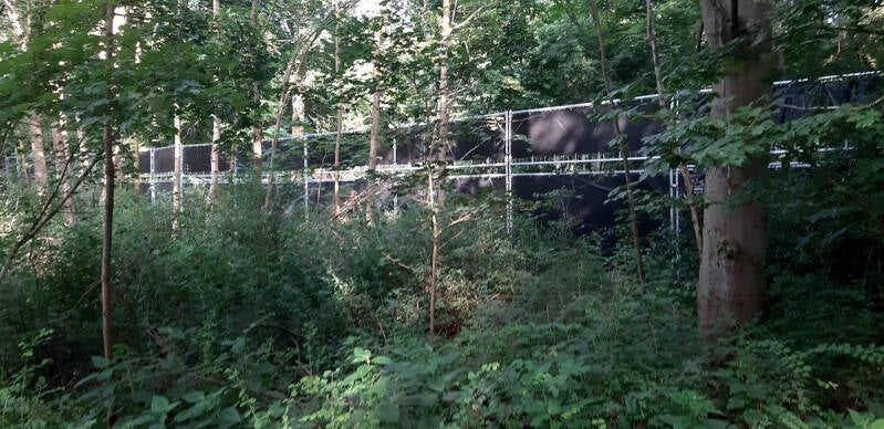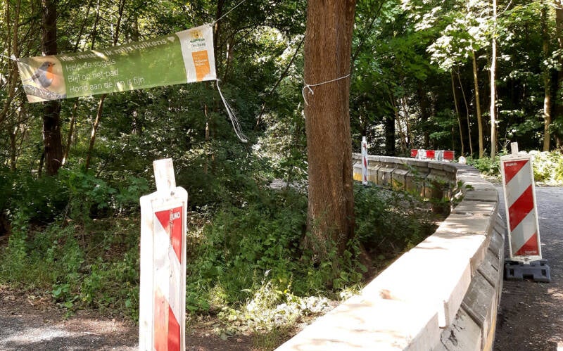 Ook het Scheveningse Bos staat vol met betonnen afzettingen, waarbij broedsels zijn verstoord en de gloednieuwe wandelpaden zijn beschadigd.