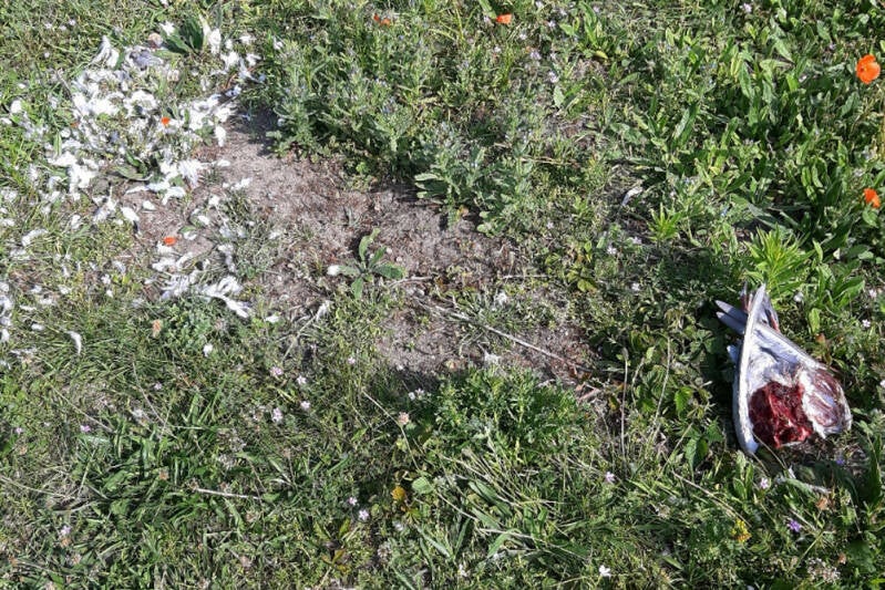 Als Pietje afvliegt schrik ik even, want er is nu pas voor het eerst bloed te zien..: