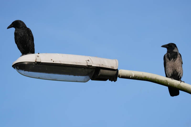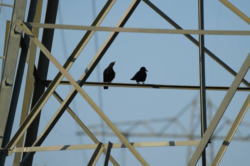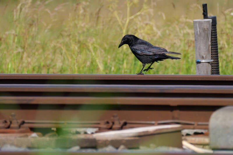 Er zijn grondwerkzaamheden gaande en Raven zijn gek op zandhopen..
