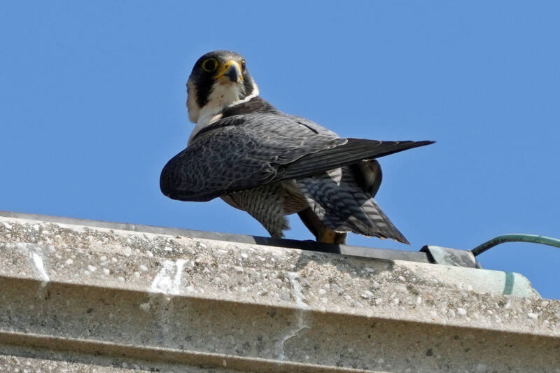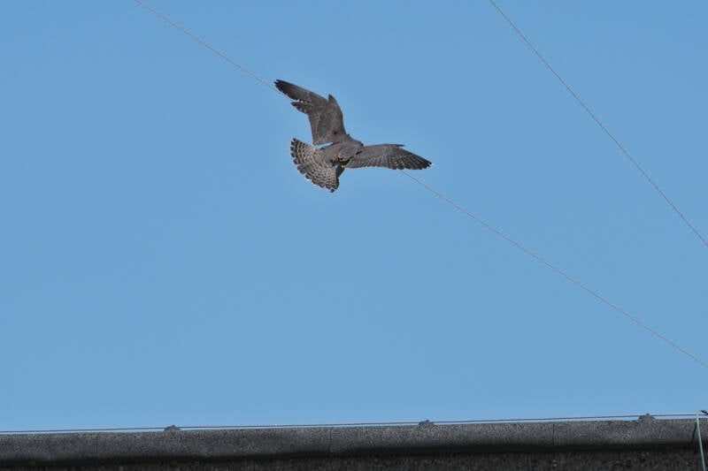 Dit is voor het eerst dat ik hier een Valk in een enigszins linke kabel-situatie tref :