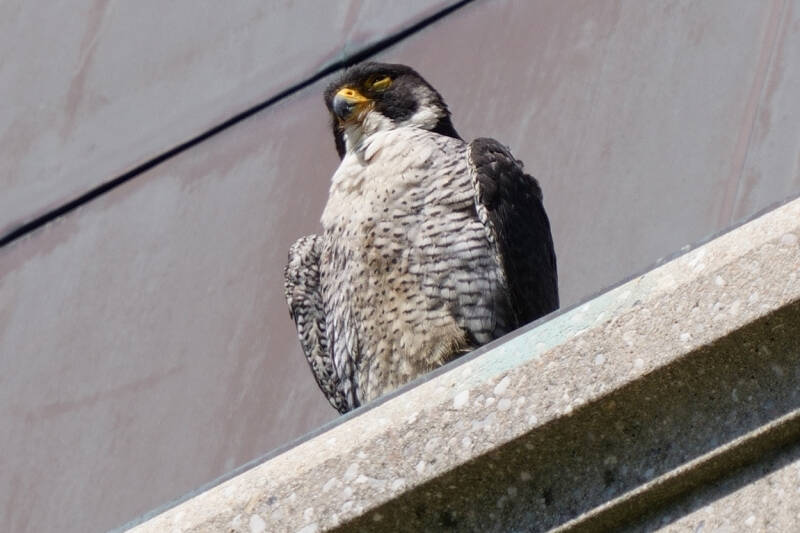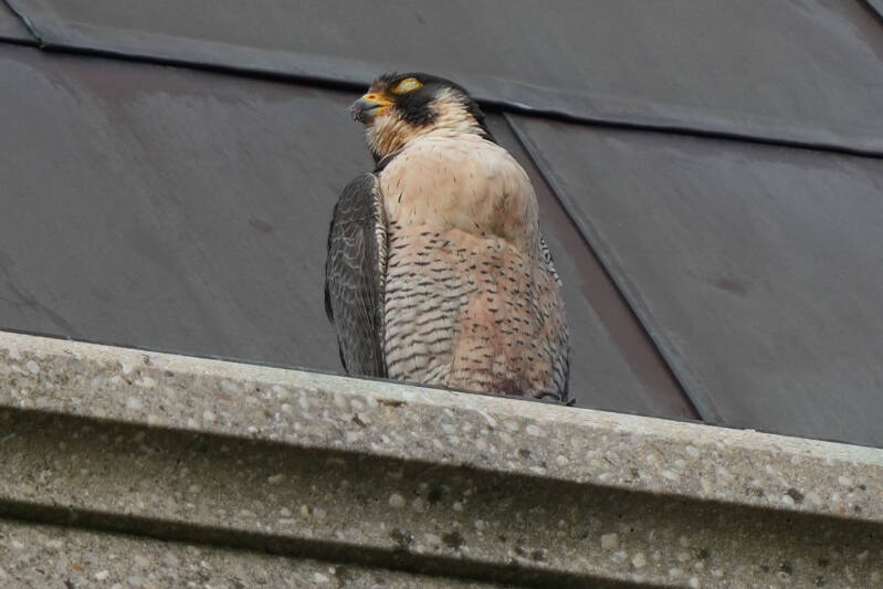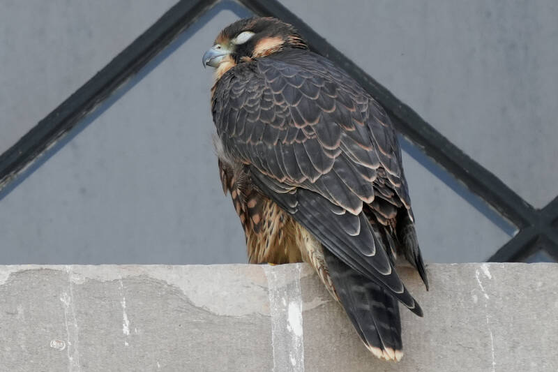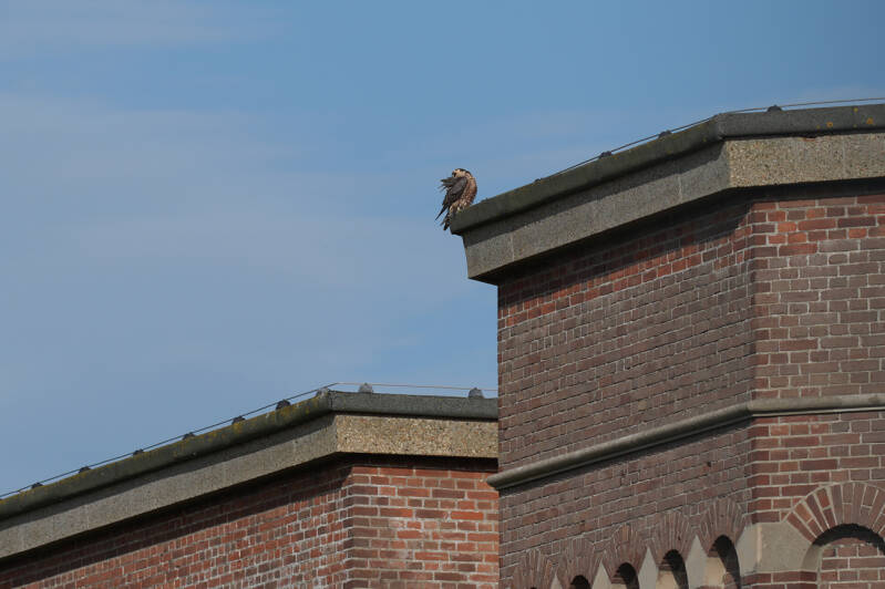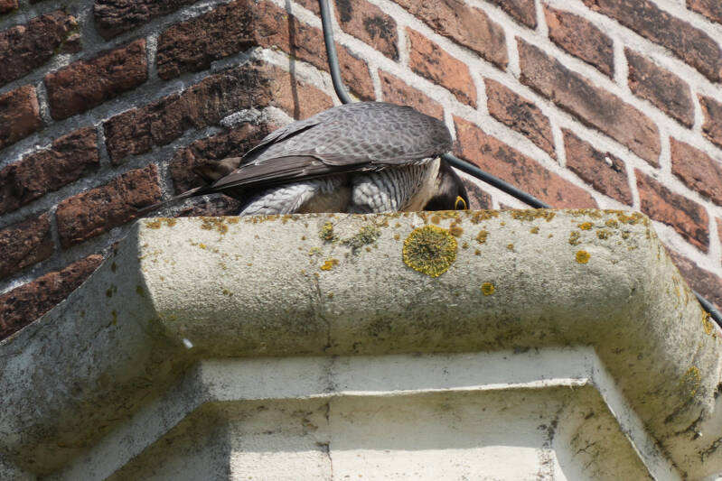 -Bij aankomst rond 18.00 uur tref ik 3 rustende Valken aan de schaduwzijde van de Toren.
