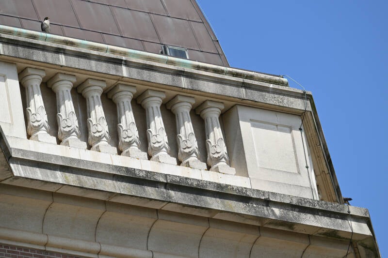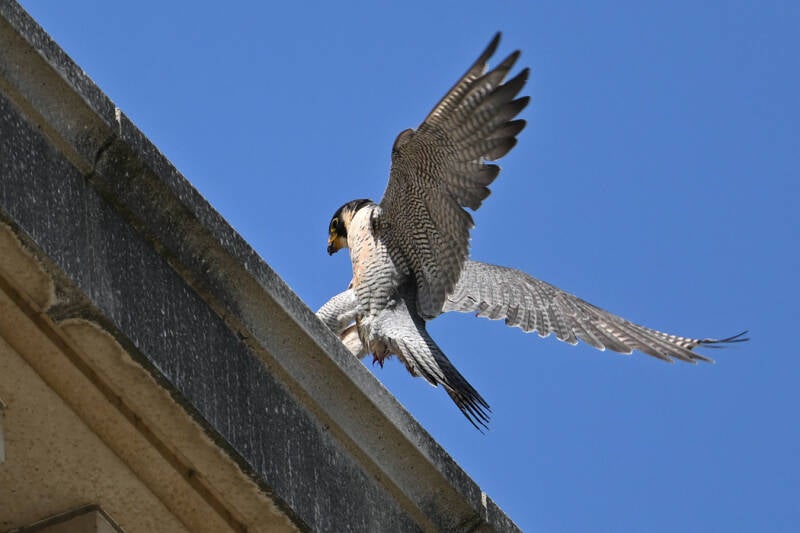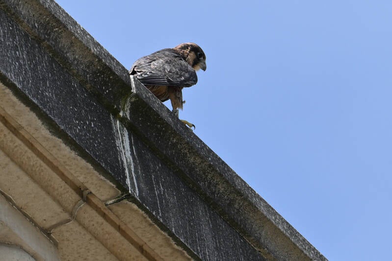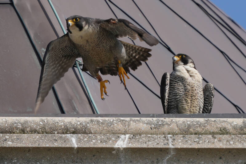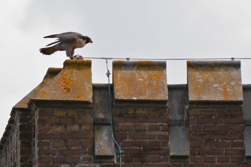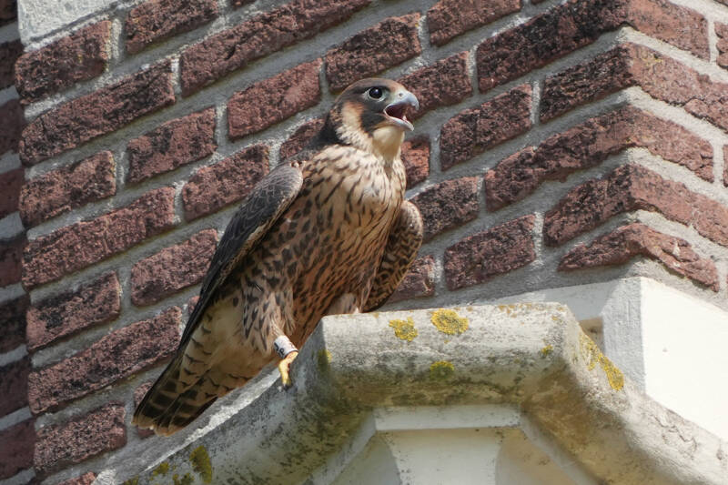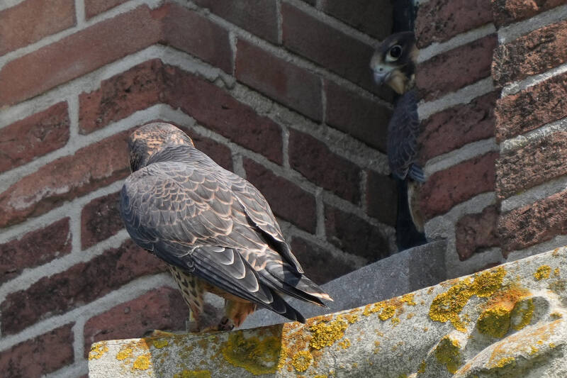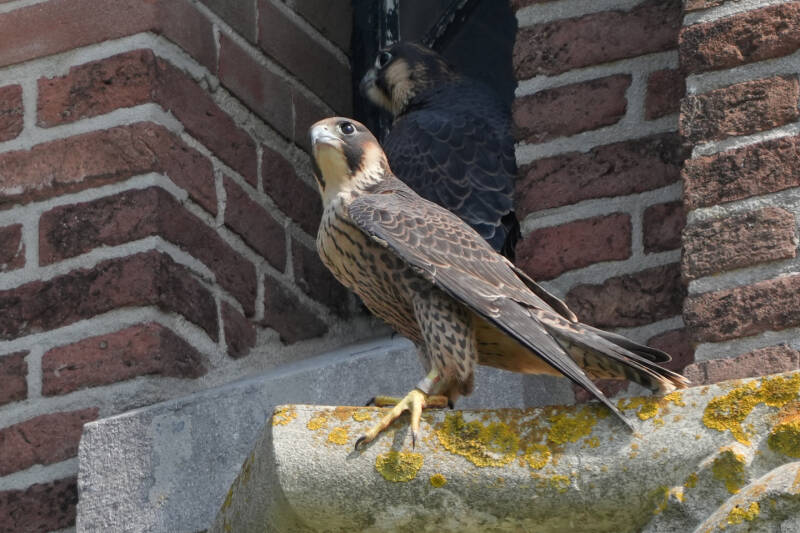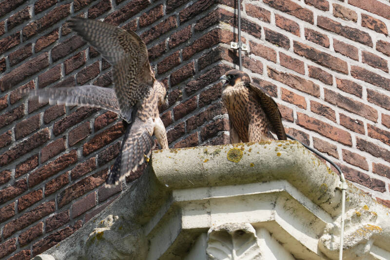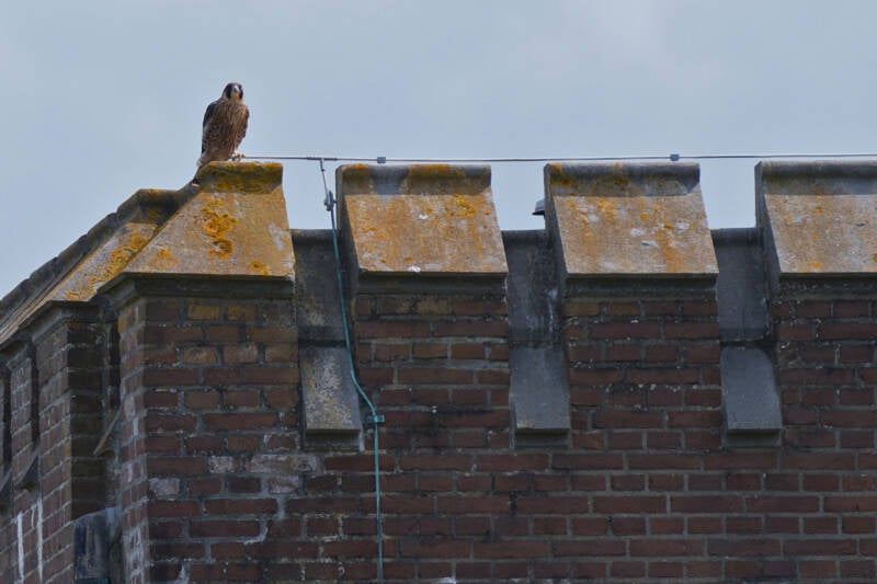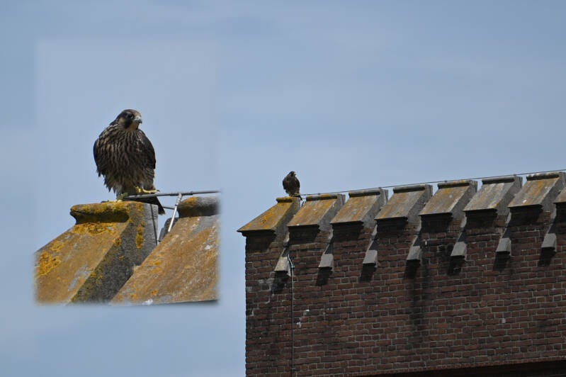 Hij strijkt ook op het Kasteeltje neer op de plek waar iets eerder het jong zat...Die zit dan waarschijnlijk buiten beeld achter de kantelen.