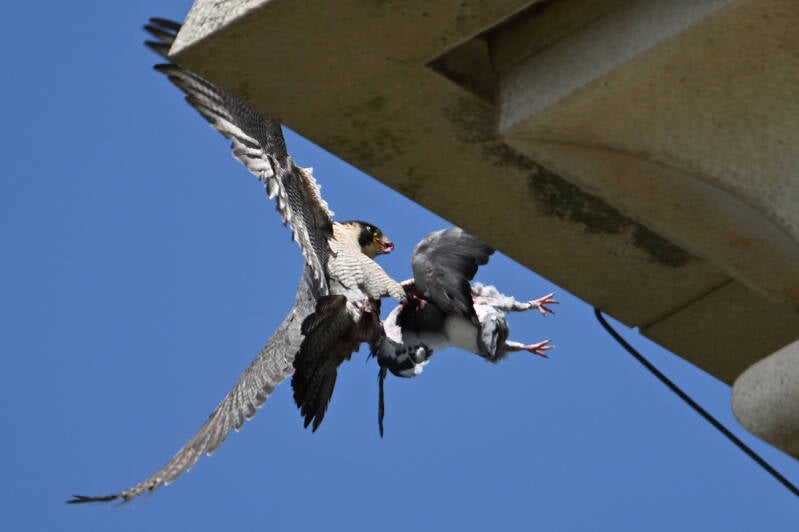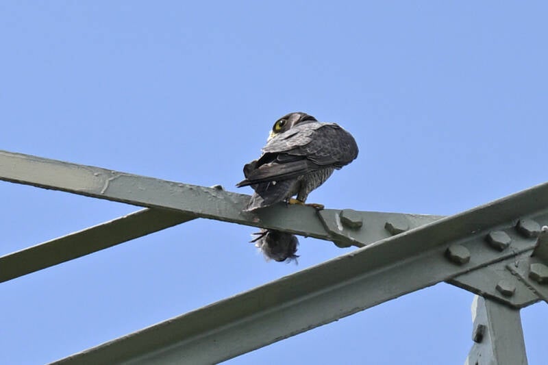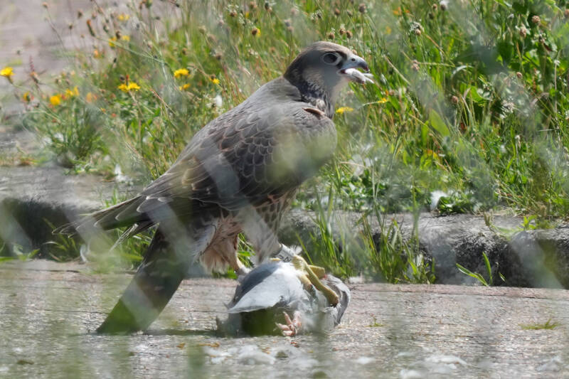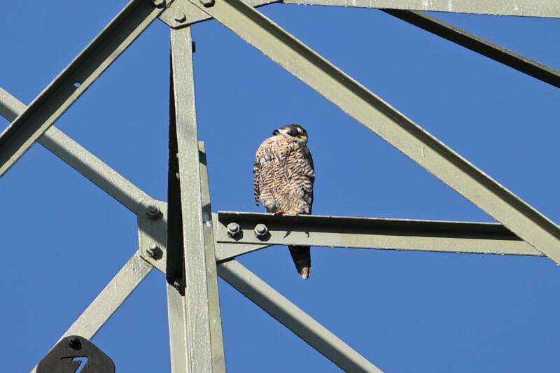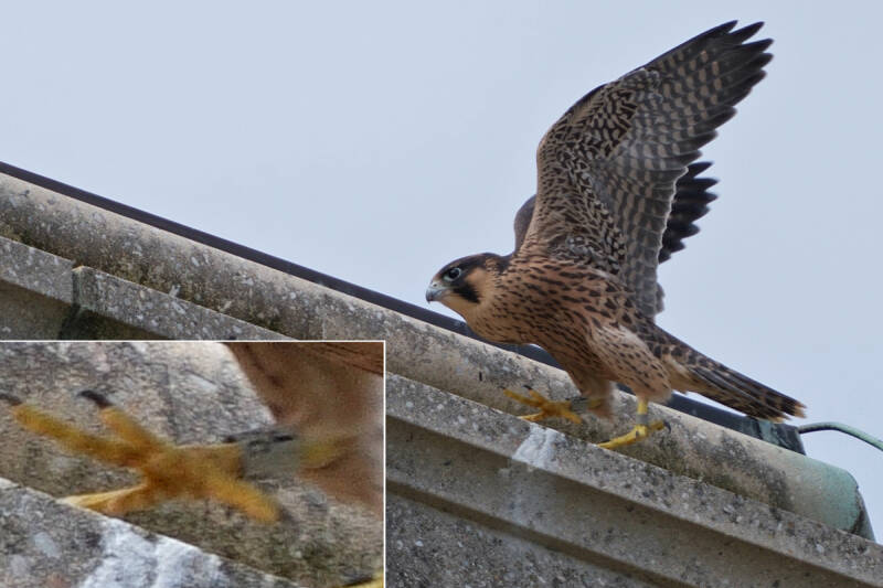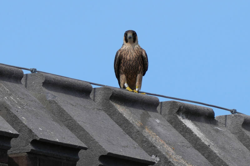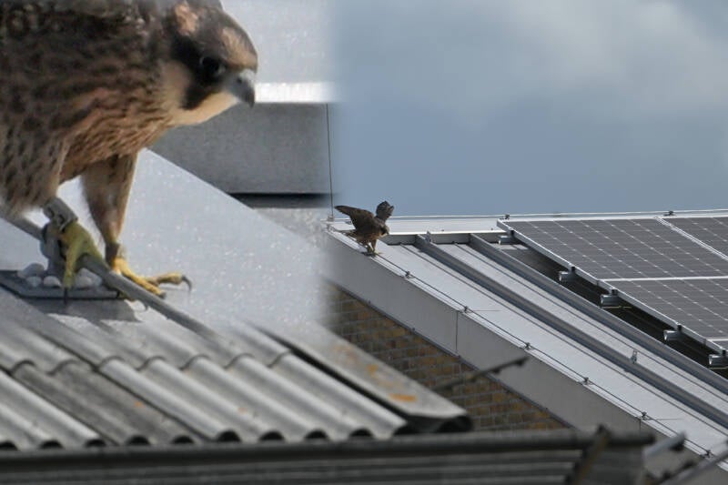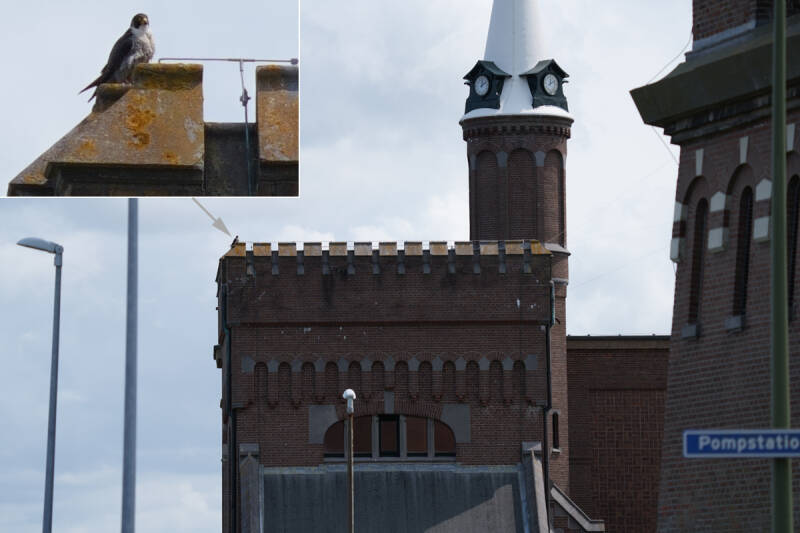 29 Juni : Slechtvalk Watertoren momenten met o.a een jonge Valk die haast in de kabels hangt en een Zwarte Roodstaart
