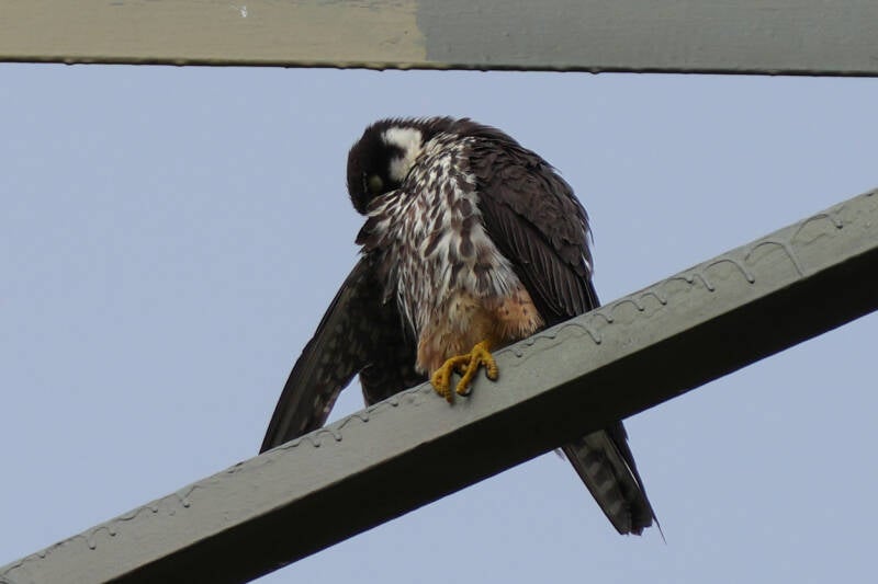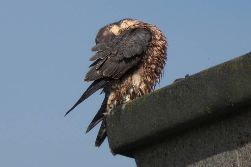 -Zonder twijfel na een bad, en dat is zeldzaam want ik heb nooit eerder een jonge Slechtvalk hier op kunnen betrappen :