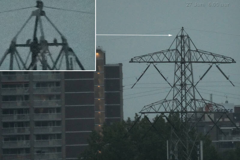 Een jong hangt bijna in de antenne-kabels bij het Kasteeltje :
