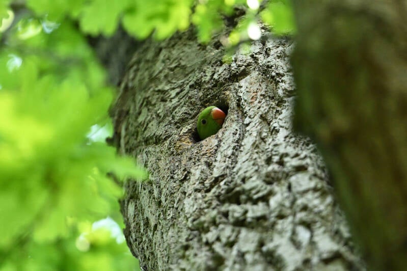Als Alo klaar is met het voederen in de nestkast is het tijd voor een pauze...Het jong JZJ is rechtsonder nog net bedelend zichtbaar :