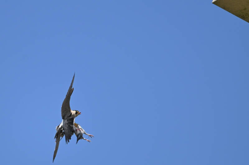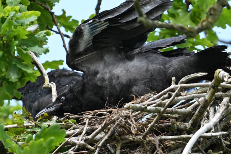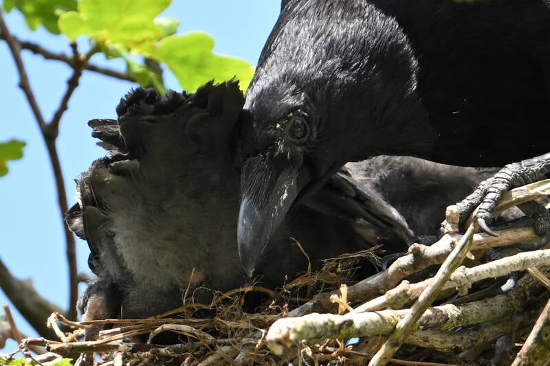Net als Raven komen de oudersvogels niet alleen op het nest om de jongen te voederen, maar inspecteren ze ook regelmatig