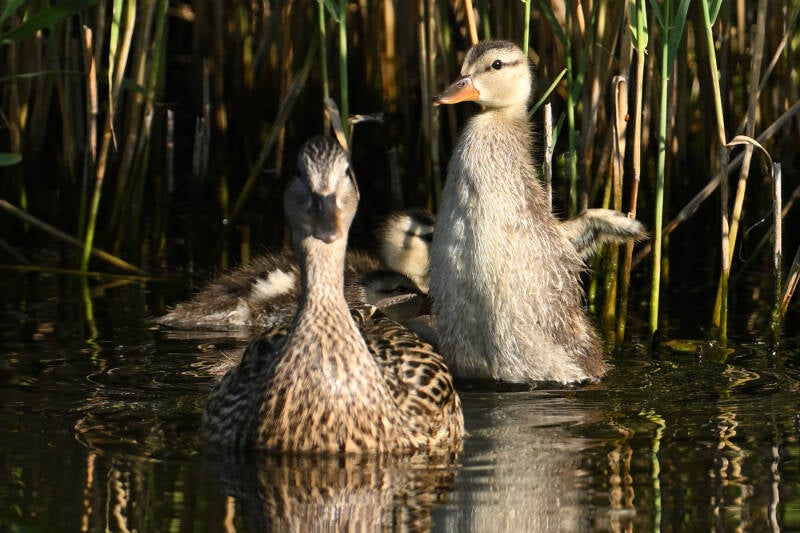 Windstil weer is meestal wel een vereiste voordat ze het hogerop zoeken. Ze zitten beide met de rug naar de camera.