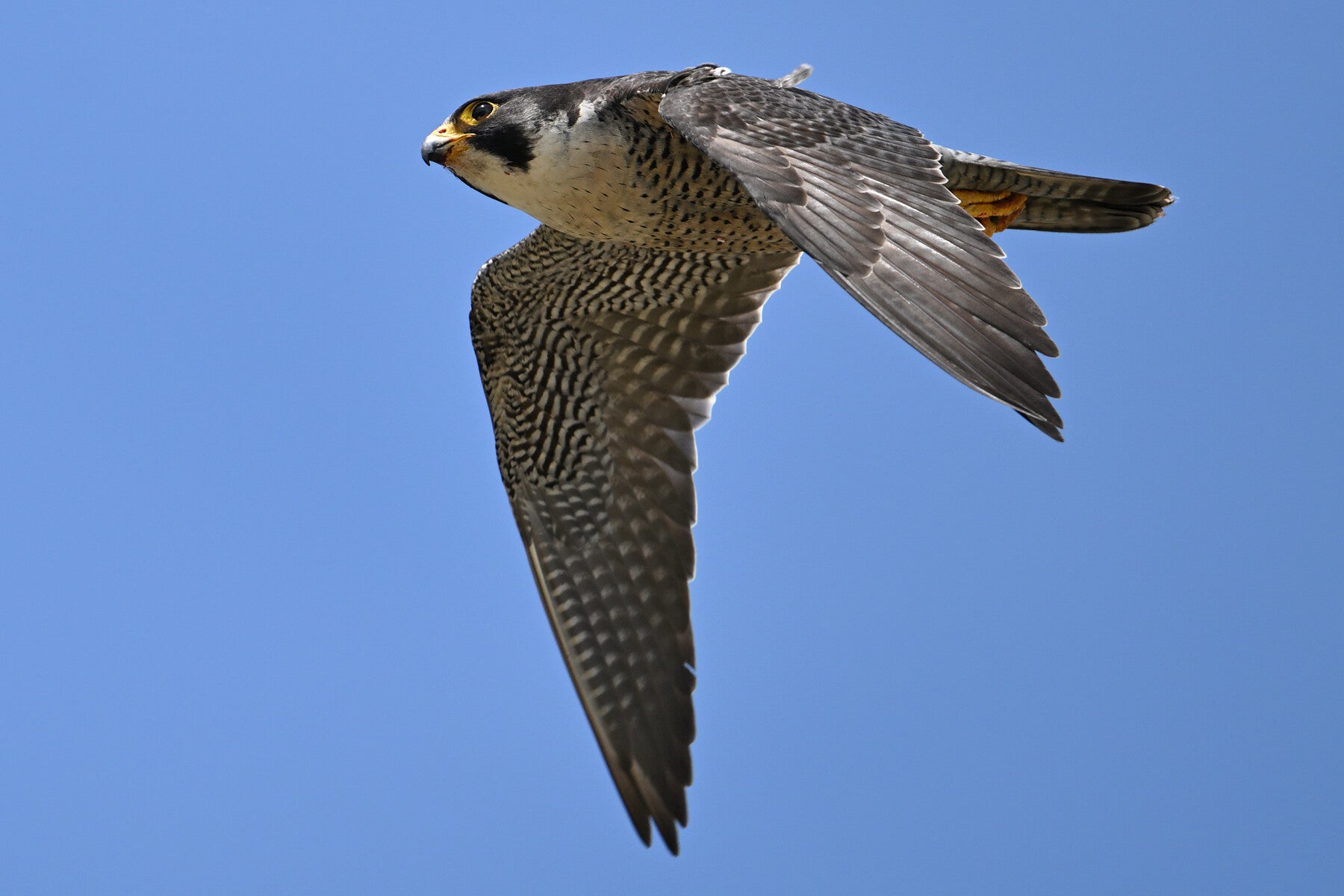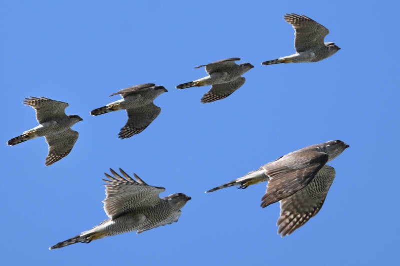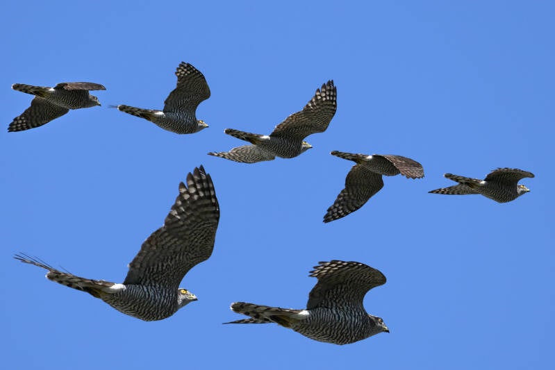 Ze toont de zeer fijne belijning die kenmerkend is voor de oudere volwassen Sperwerwijfjes :