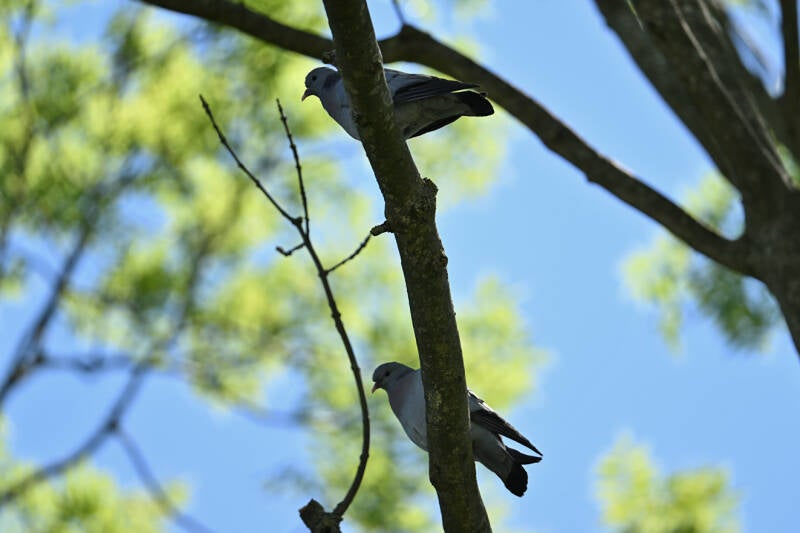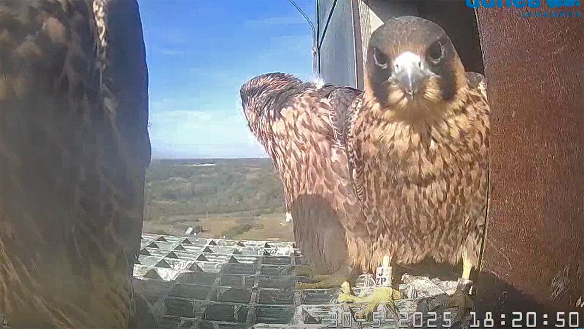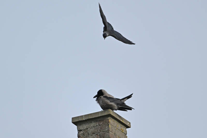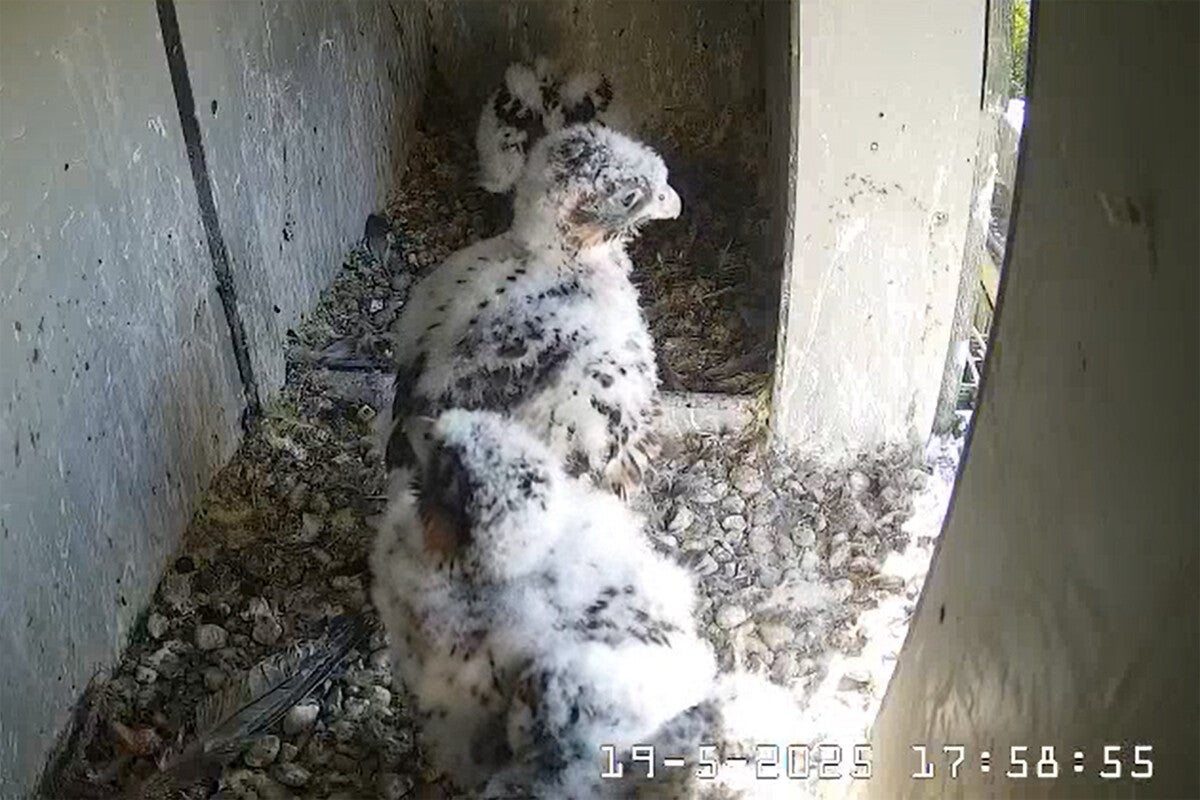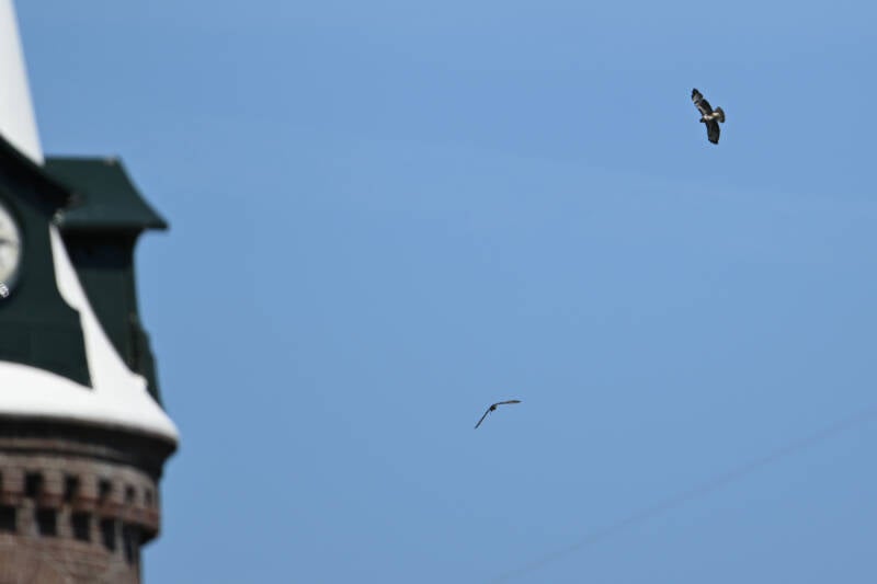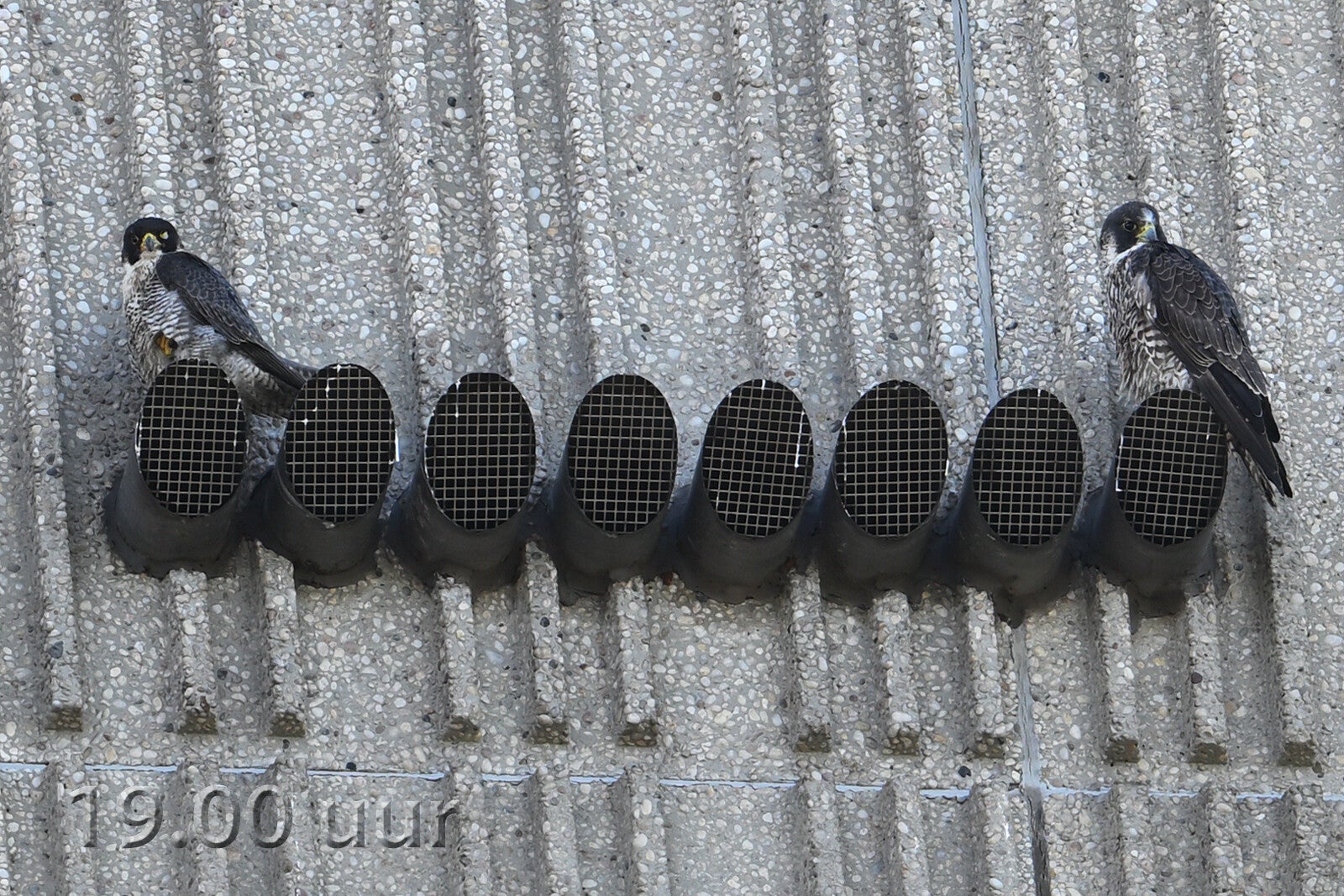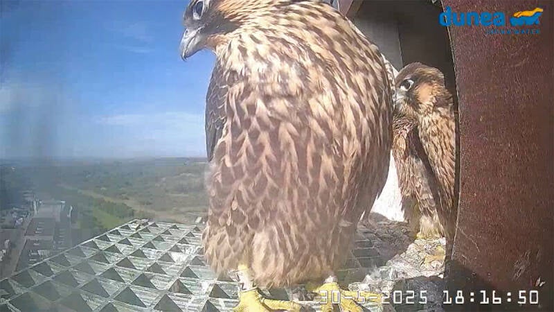 Betreft een wijfje van net een jaar oud en een volwassen mannetje. Vreemd genoeg maken ze geen gebruik van de nabije masten en ook de