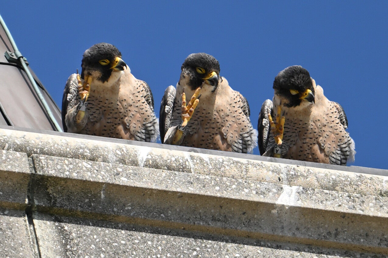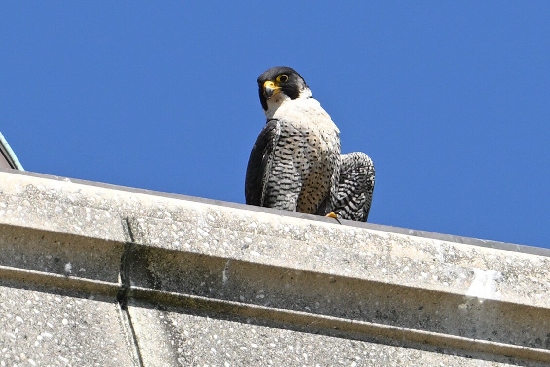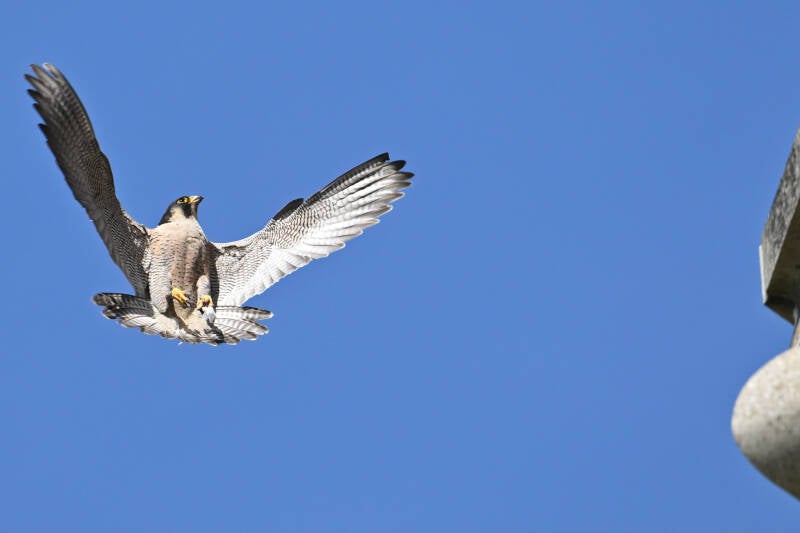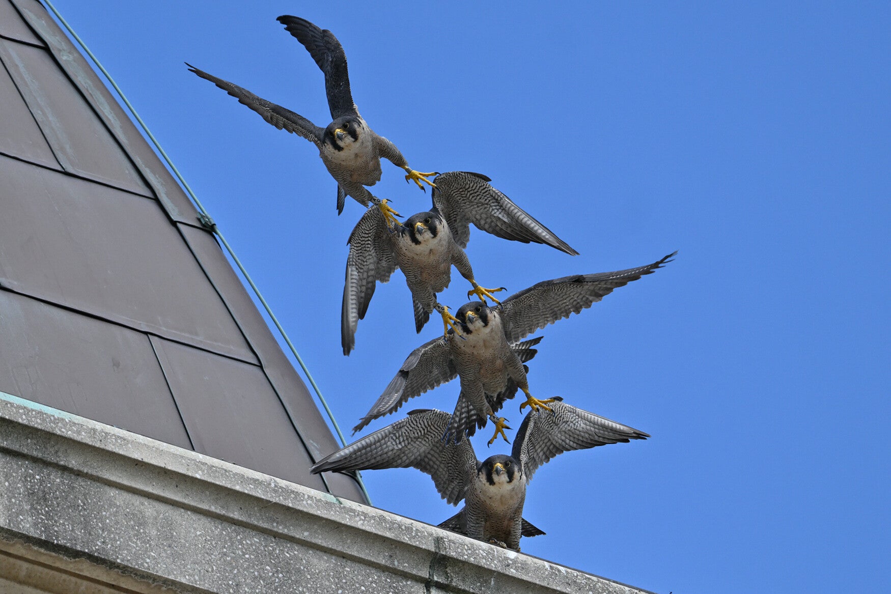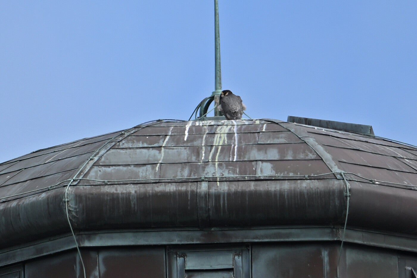 Betreft een wijfje van net een jaar oud en een volwassen mannetje. Vreemd genoeg maken ze geen gebruik van de nabije masten en ook de