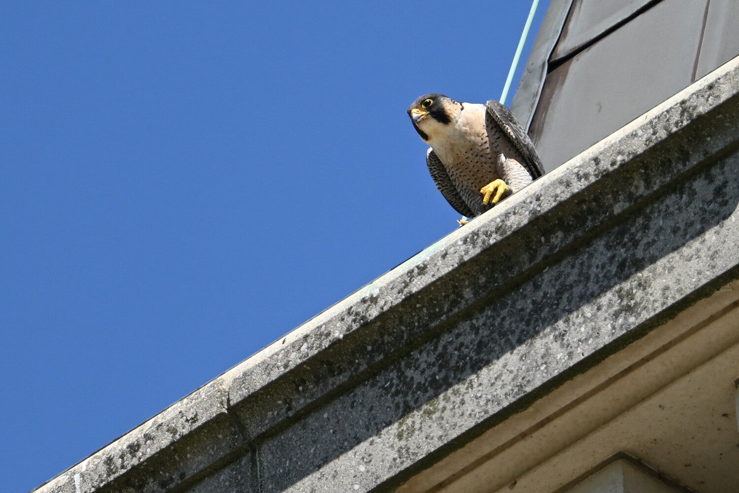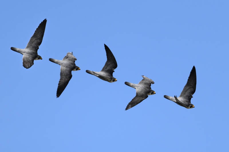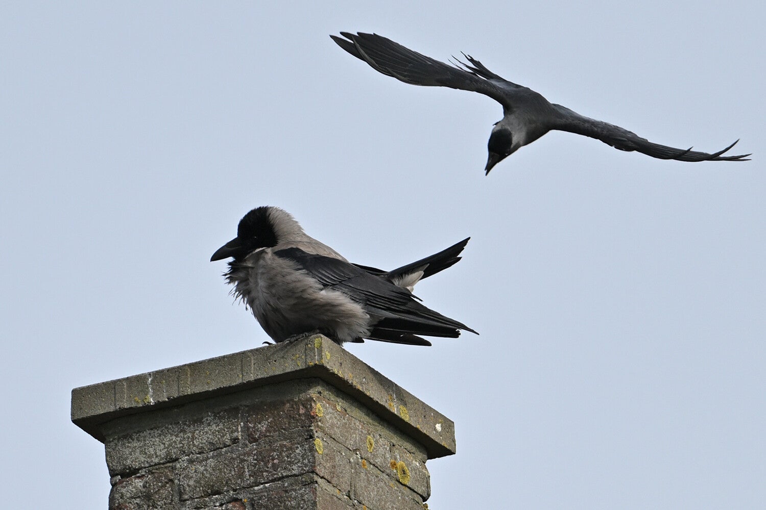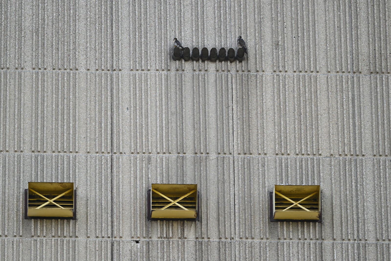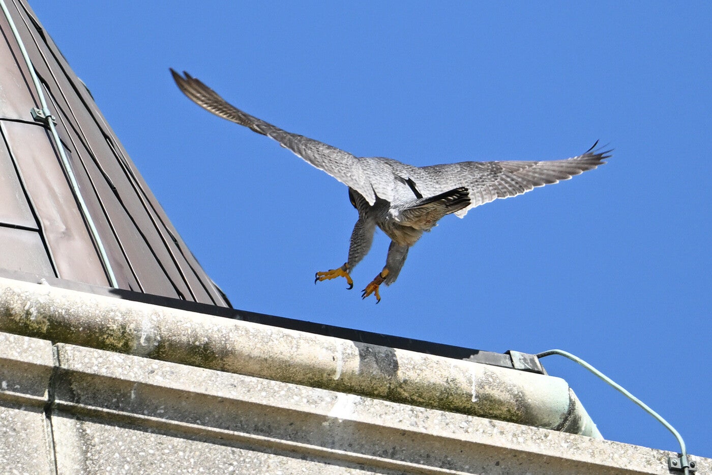 Betreft een wijfje van net een jaar oud en een volwassen mannetje. Vreemd genoeg maken ze geen gebruik van de nabije masten en ook de